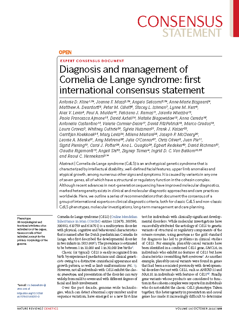 Diagnosis and management of Cornelia de Lange syndrome: first international consensus statement (2018)