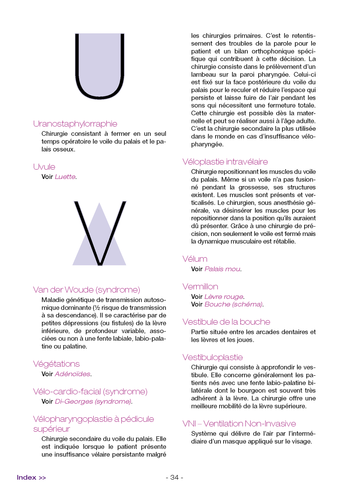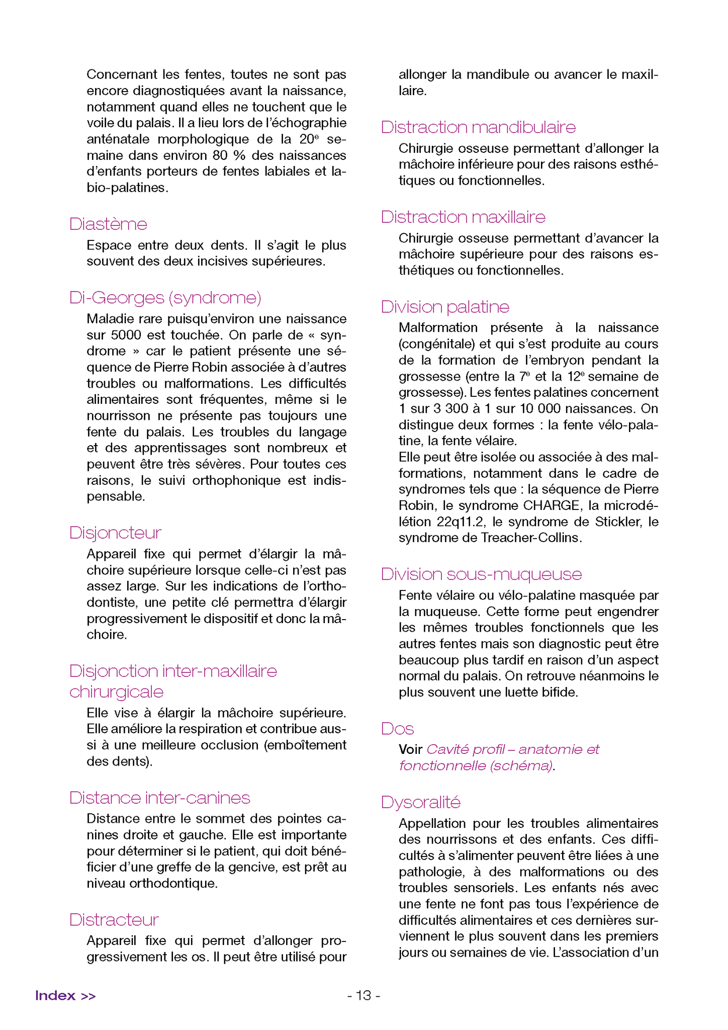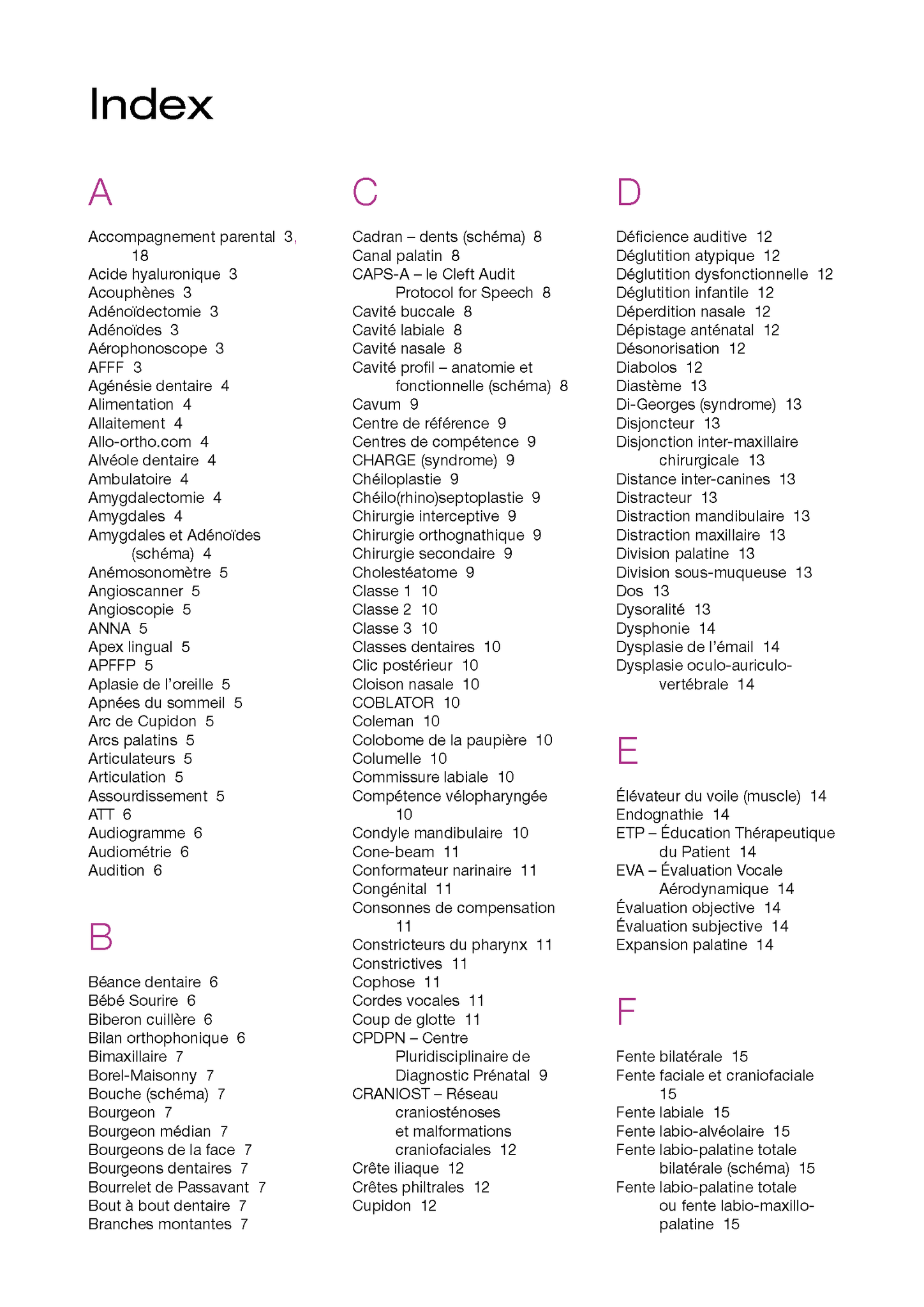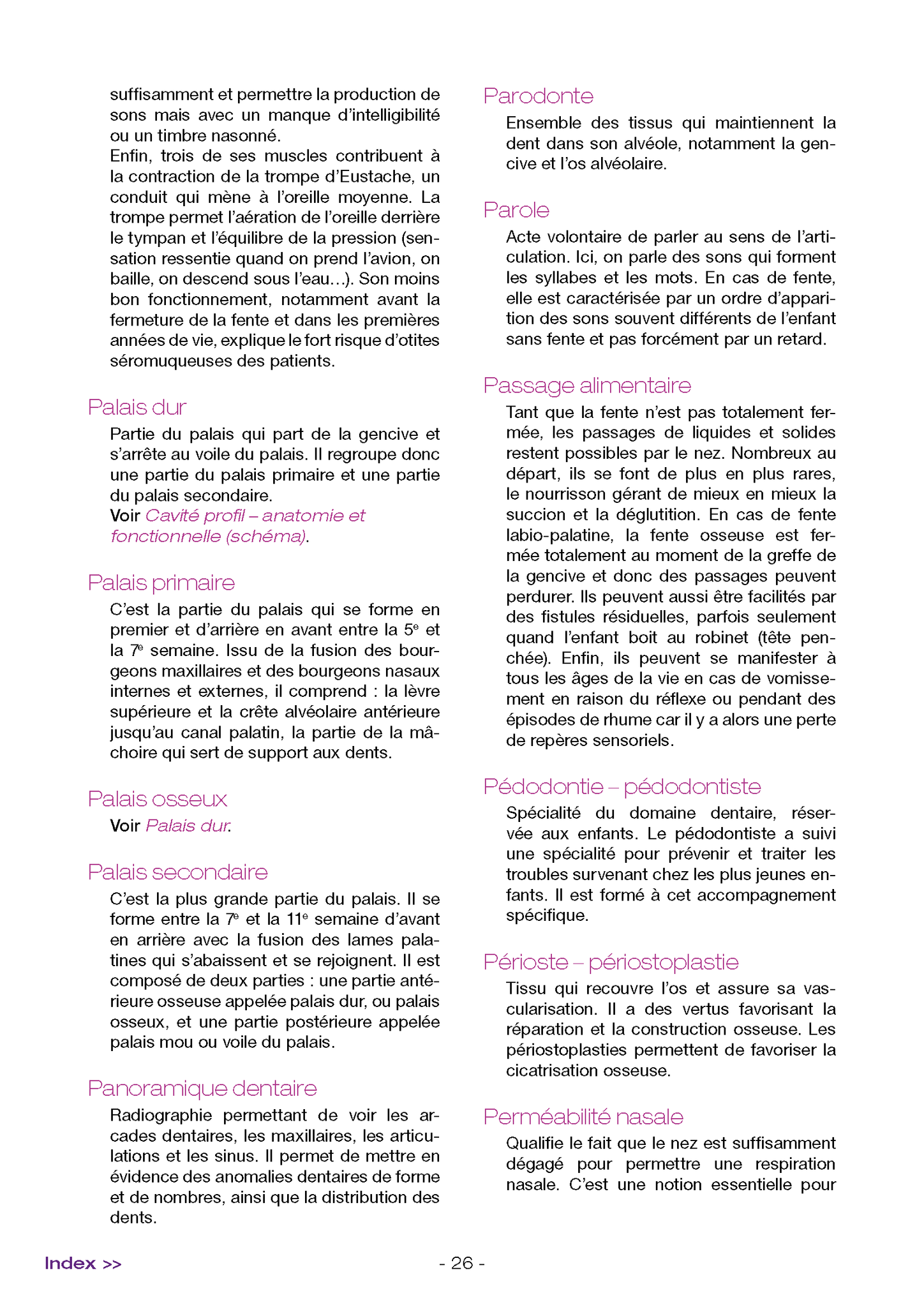 Des termes décrivant les structures de prise en charge des patients porteurs de fentes viennent compléter le livre.
