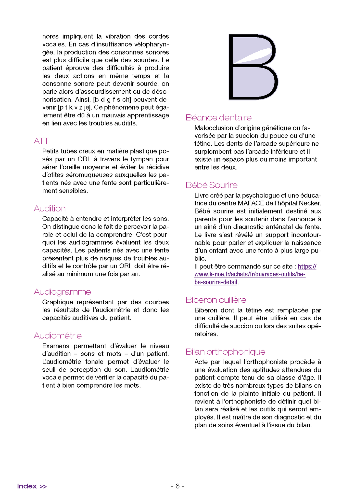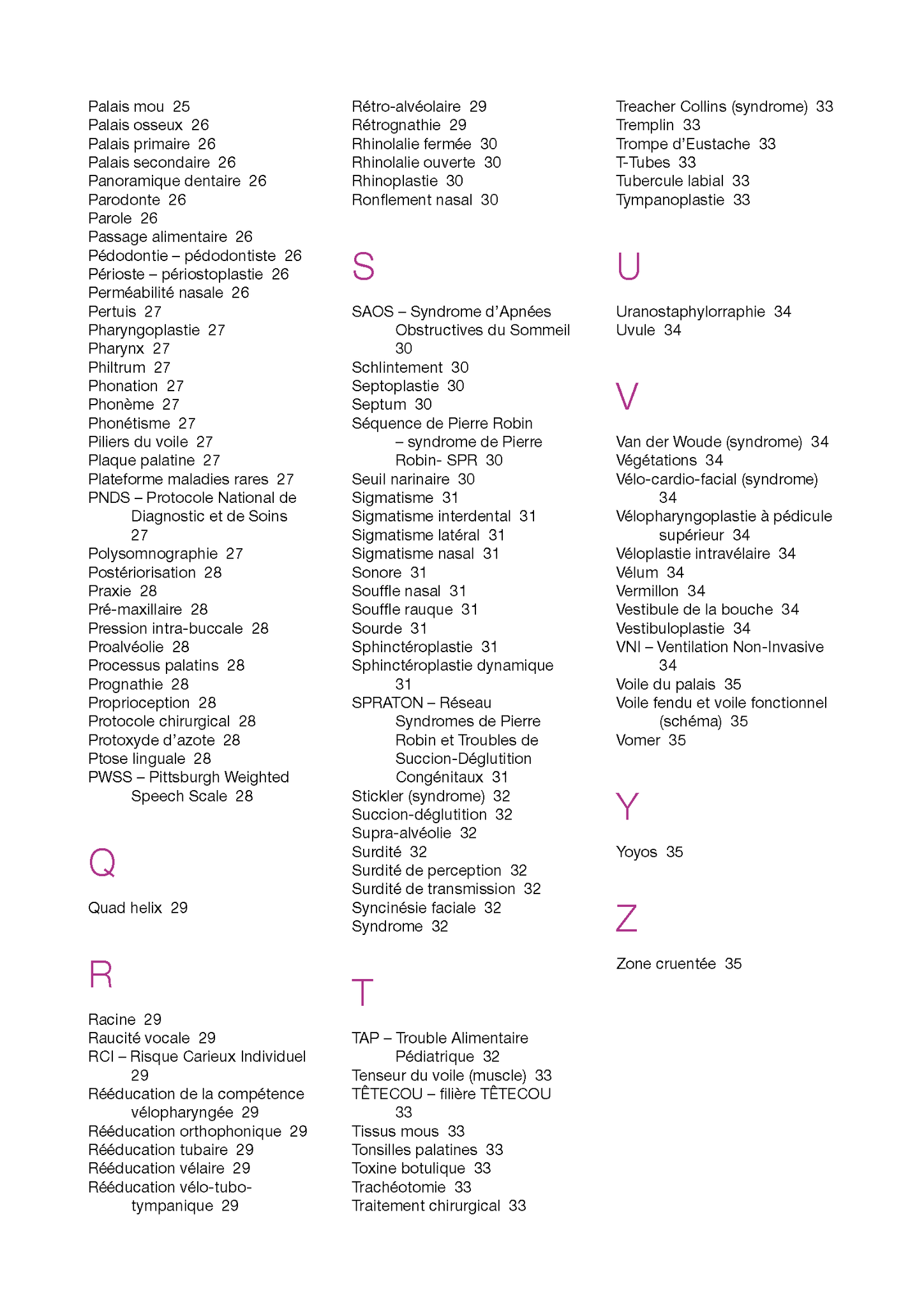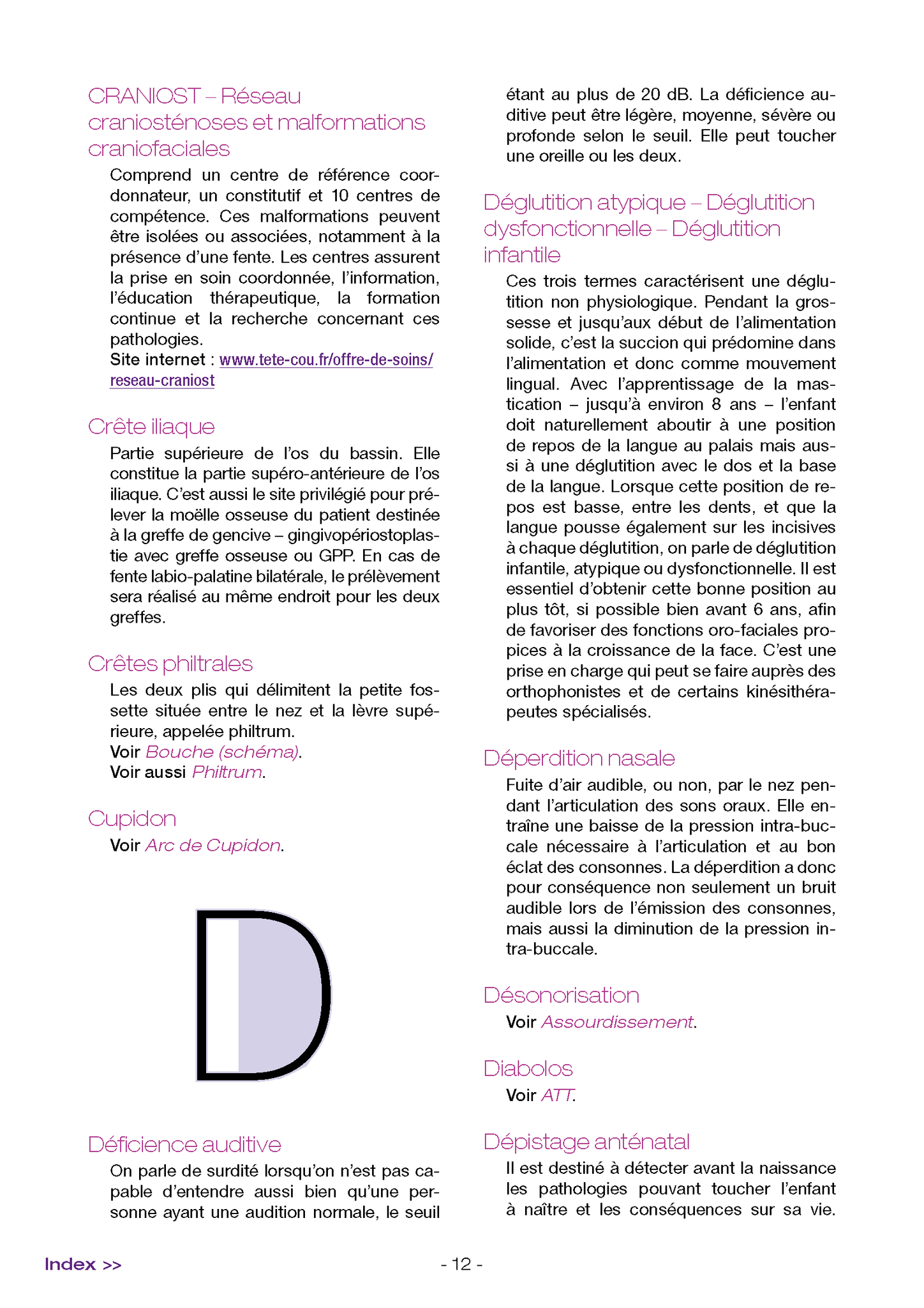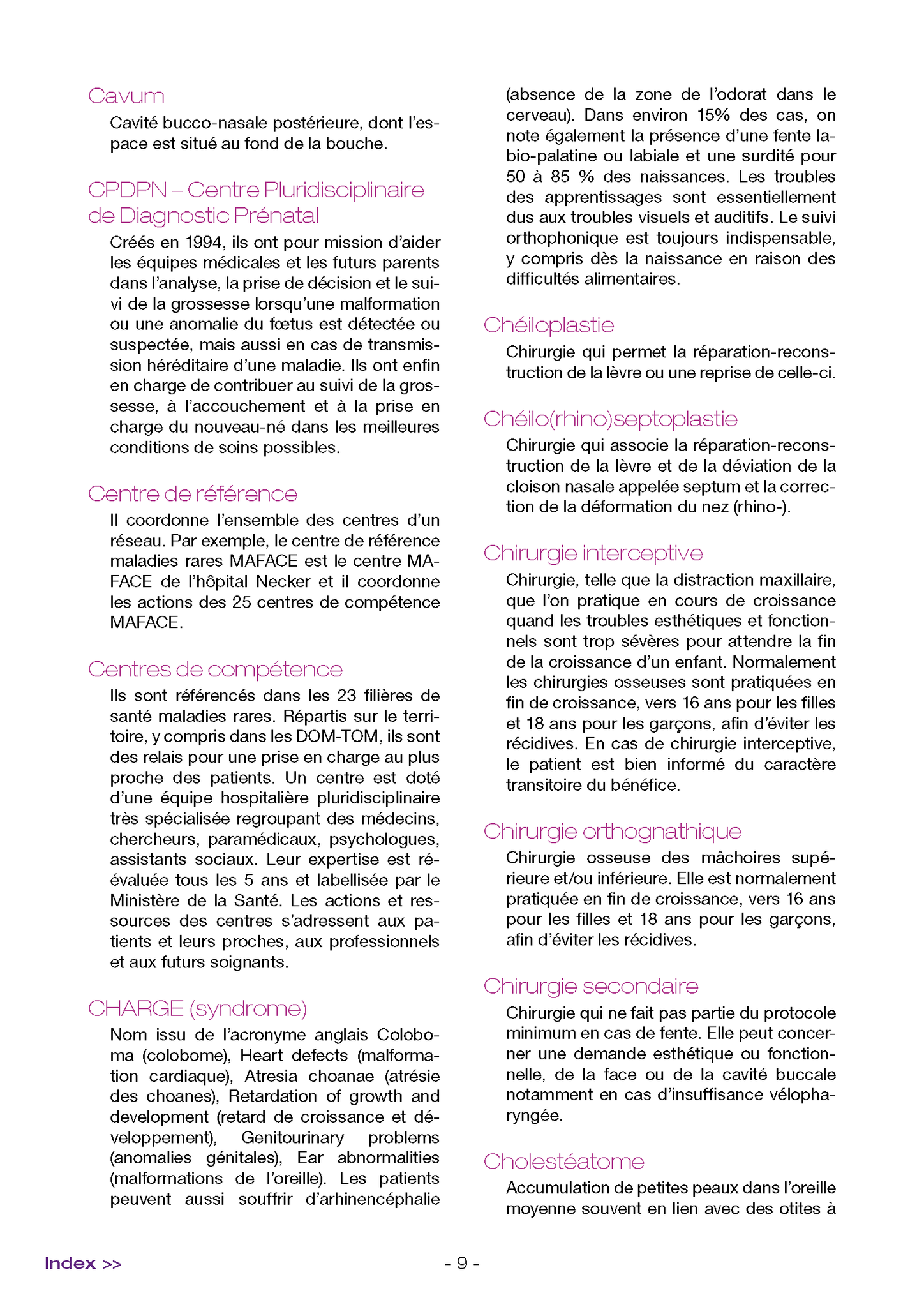 Des termes décrivant les structures de prise en charge des patients porteurs de fentes viennent compléter le livre.