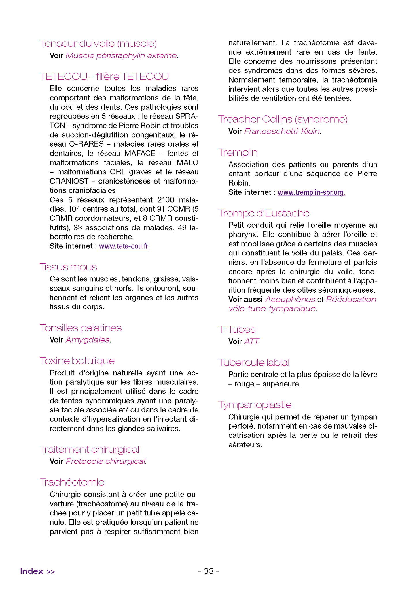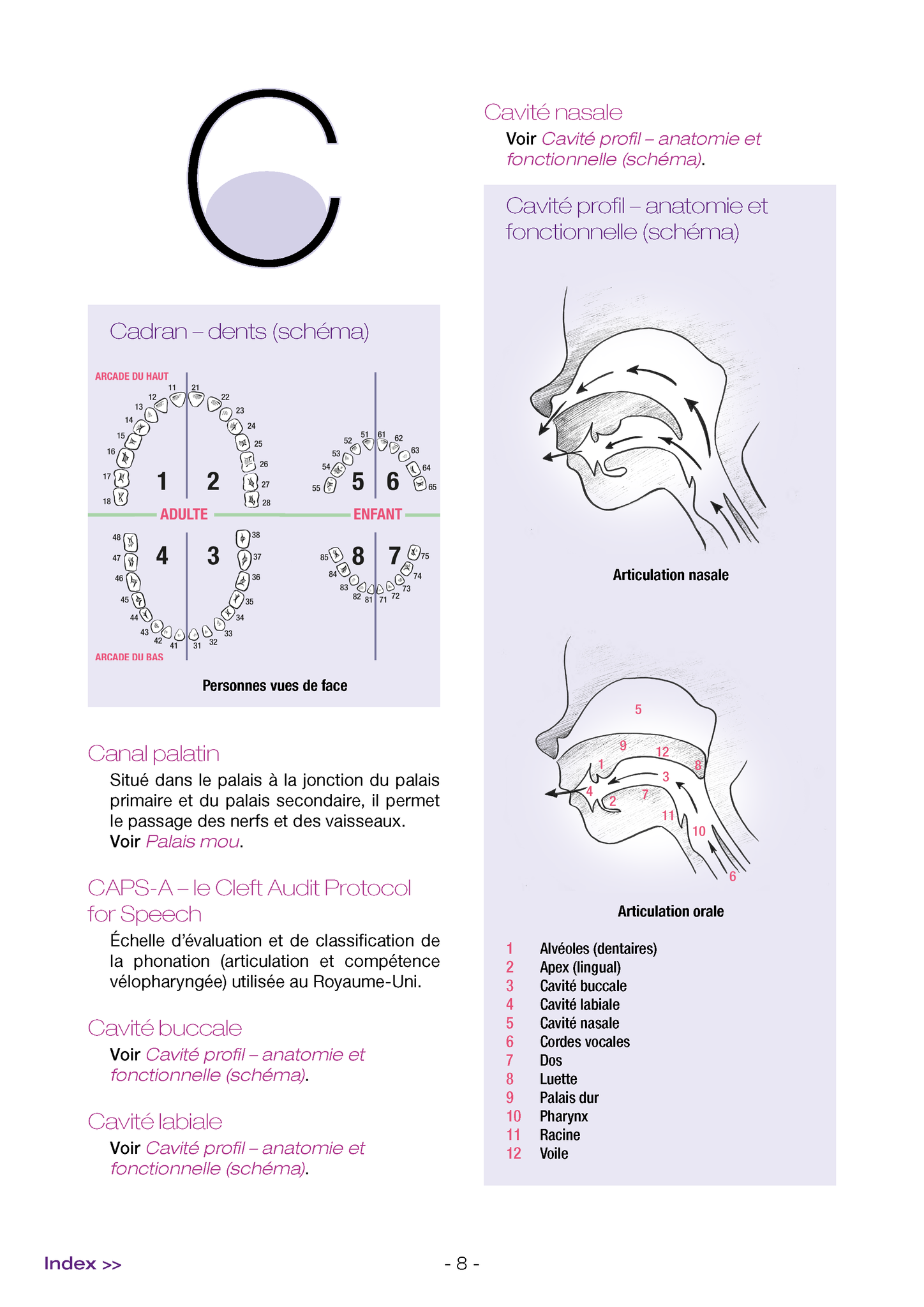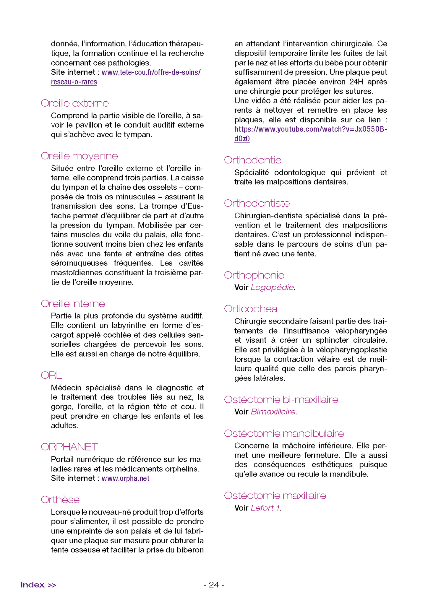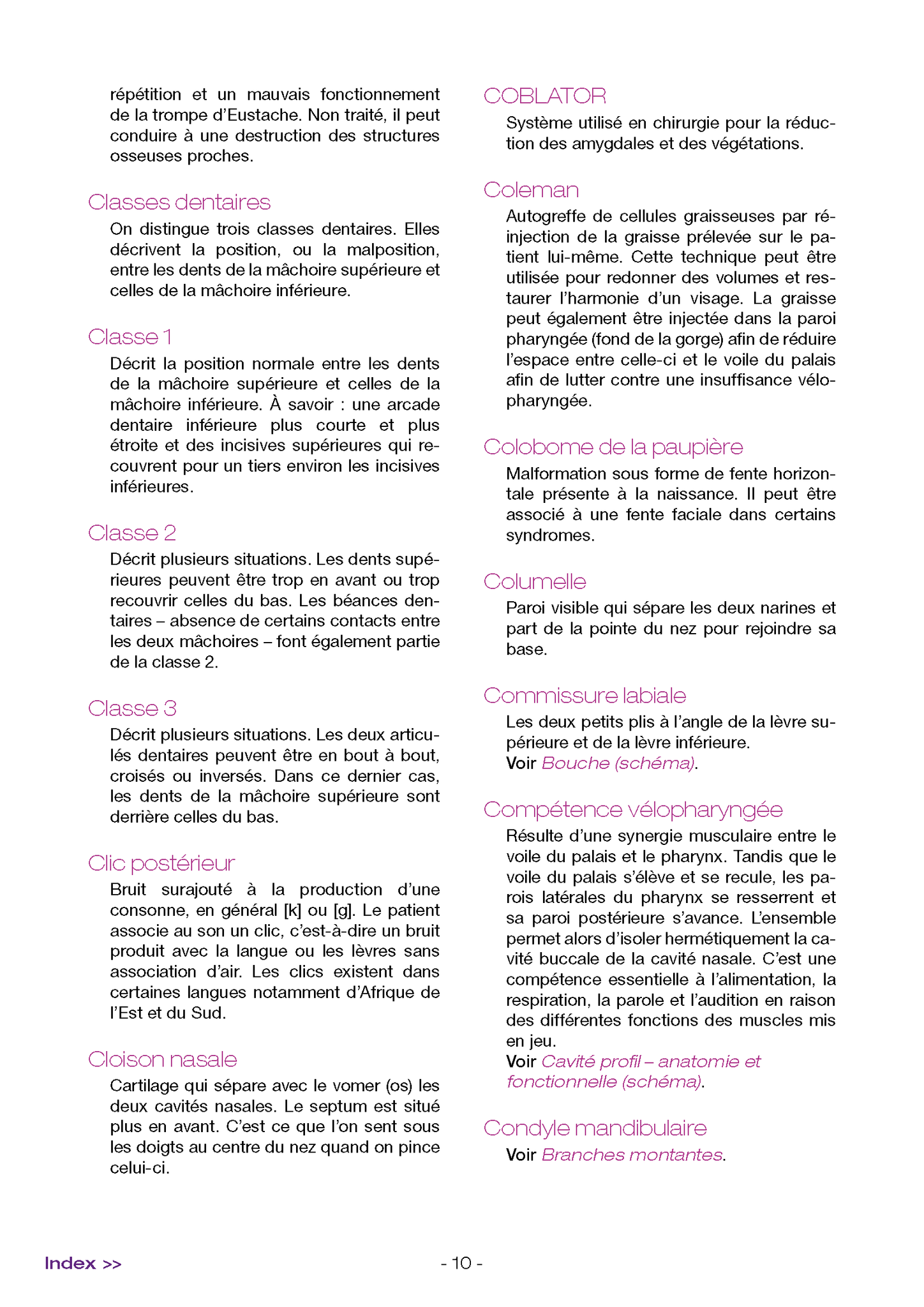Des termes décrivant les structures de prise en charge des patients porteurs de fentes viennent compléter le livre.
