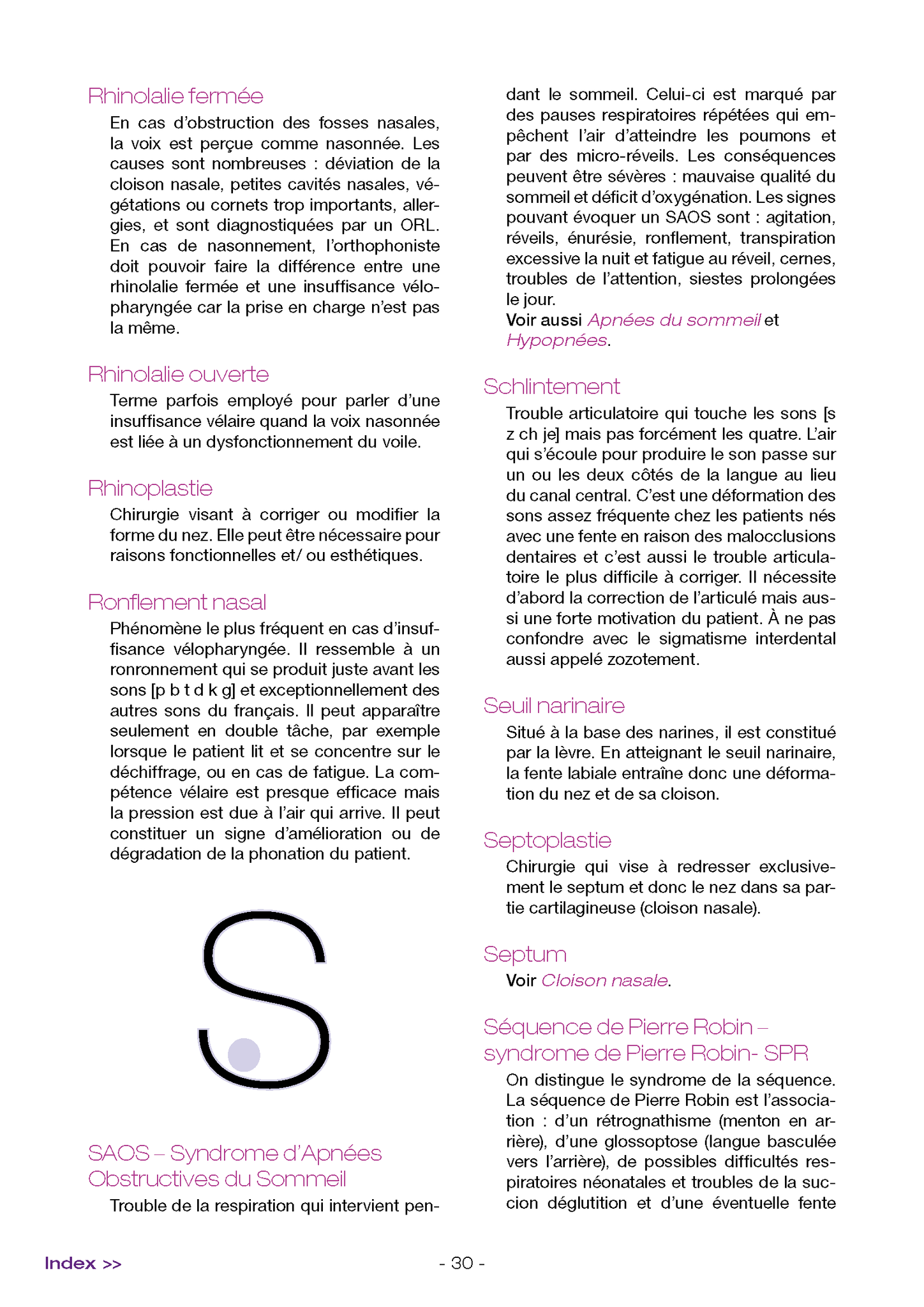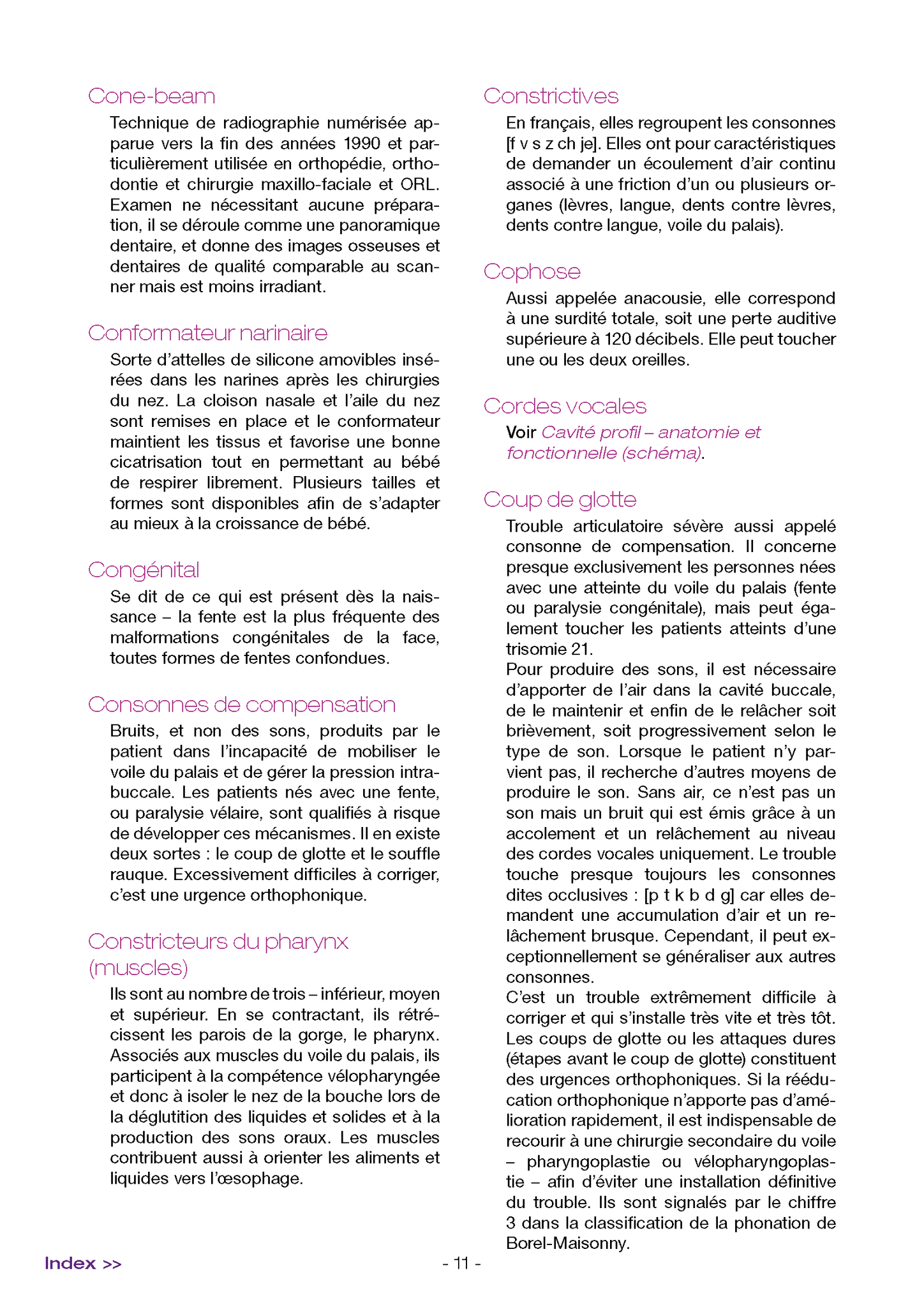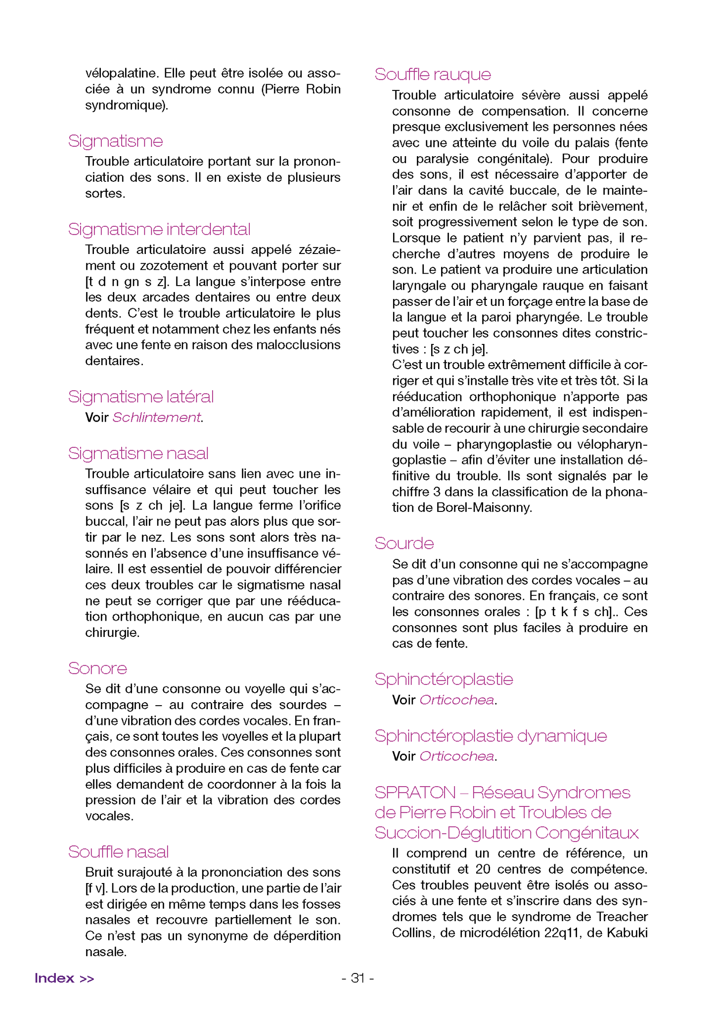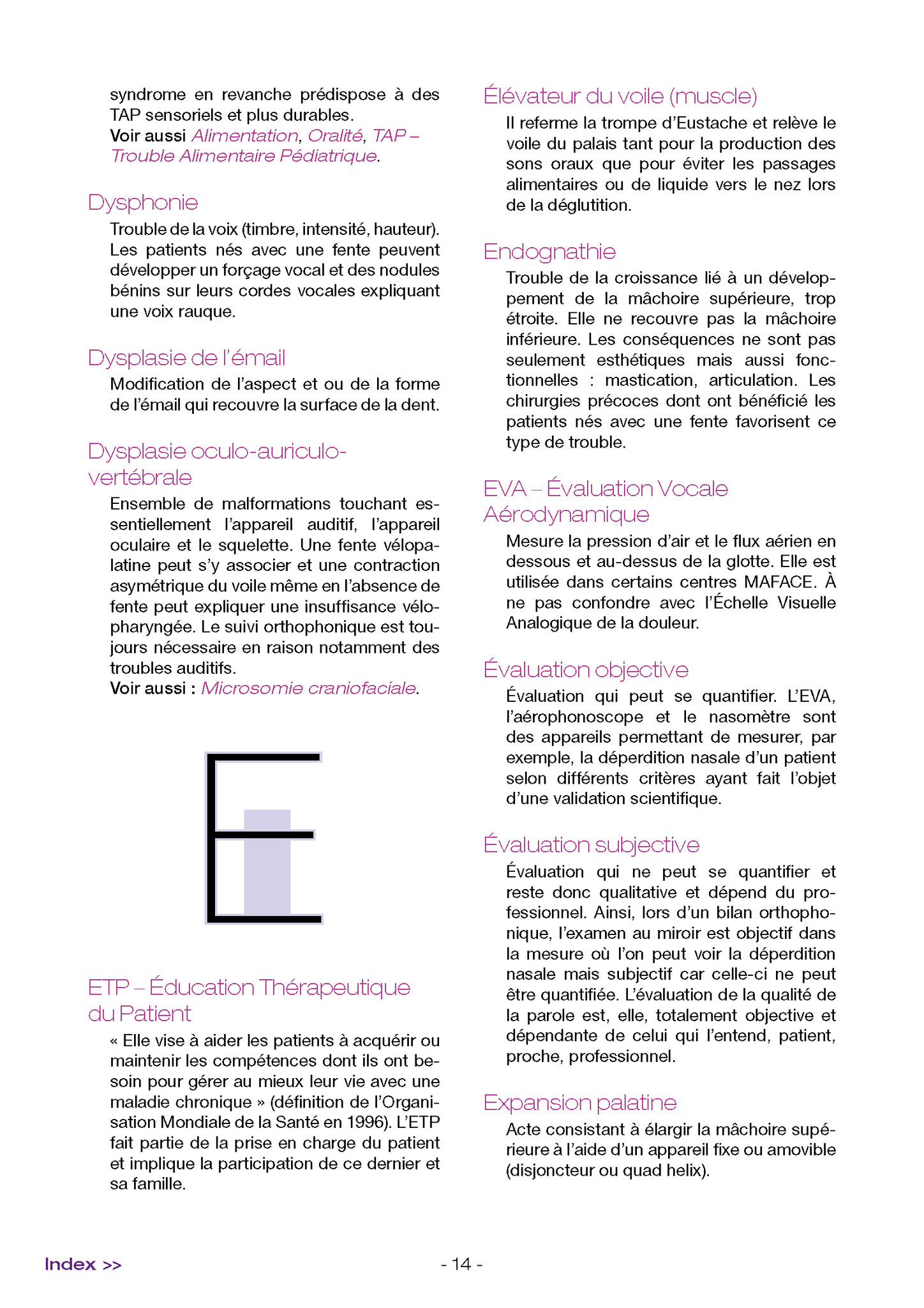 Des termes décrivant les structures de prise en charge des patients porteurs de fentes viennent compléter le livre.