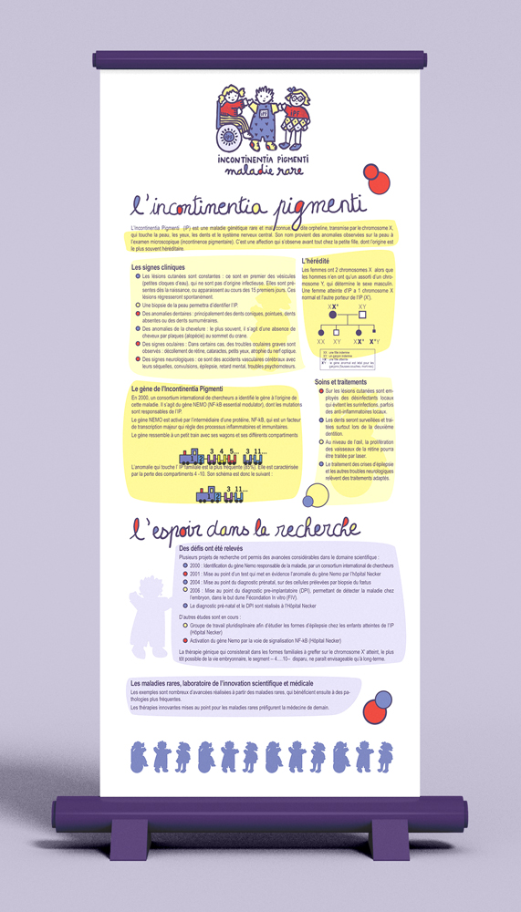L'incontinentia pigmenti est une maladie génétique rare caractérisée principalement par des atteintes de la peau et des dents, et pour les formes les plus sévères, des yeux et du système nerveux central.