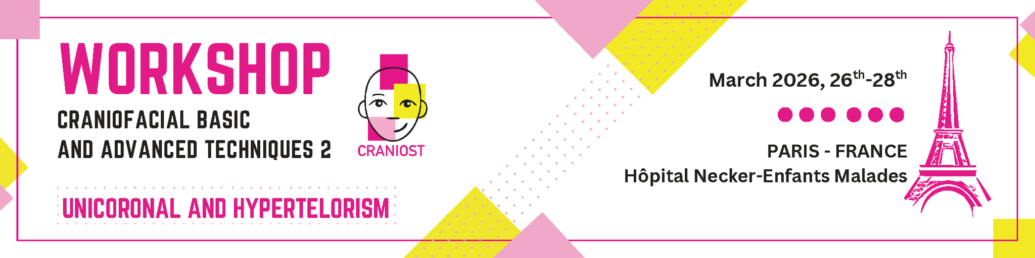 Organized by the French Reference Center for Craniosynostoses and Craniofacial Malformations (CRANIOST), in collaboration with an international expert committee, this workshop will allow craniofacial surgeons to learn unicoronal craniosynostosis correction procedures, and how to manage hypertelorism.