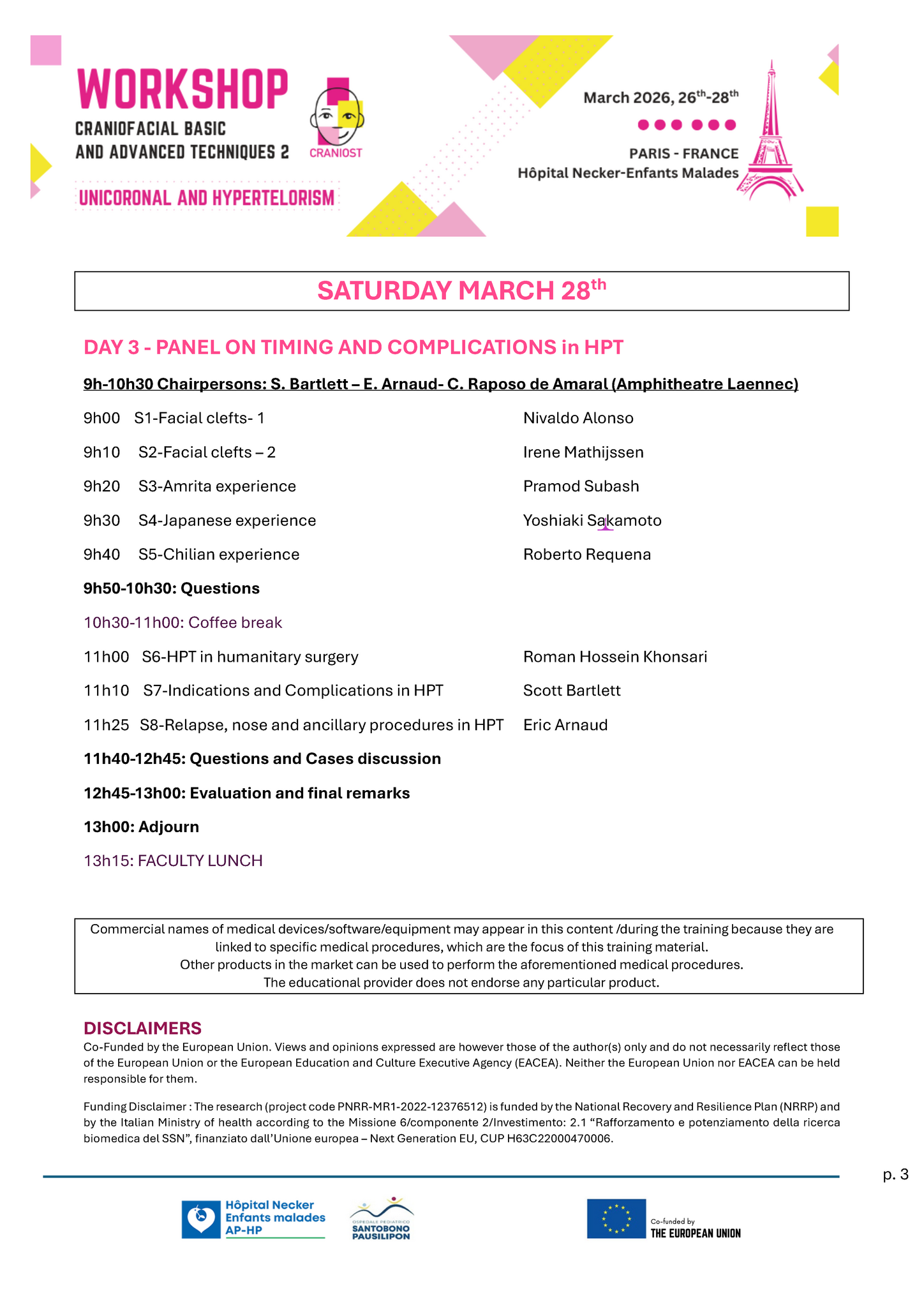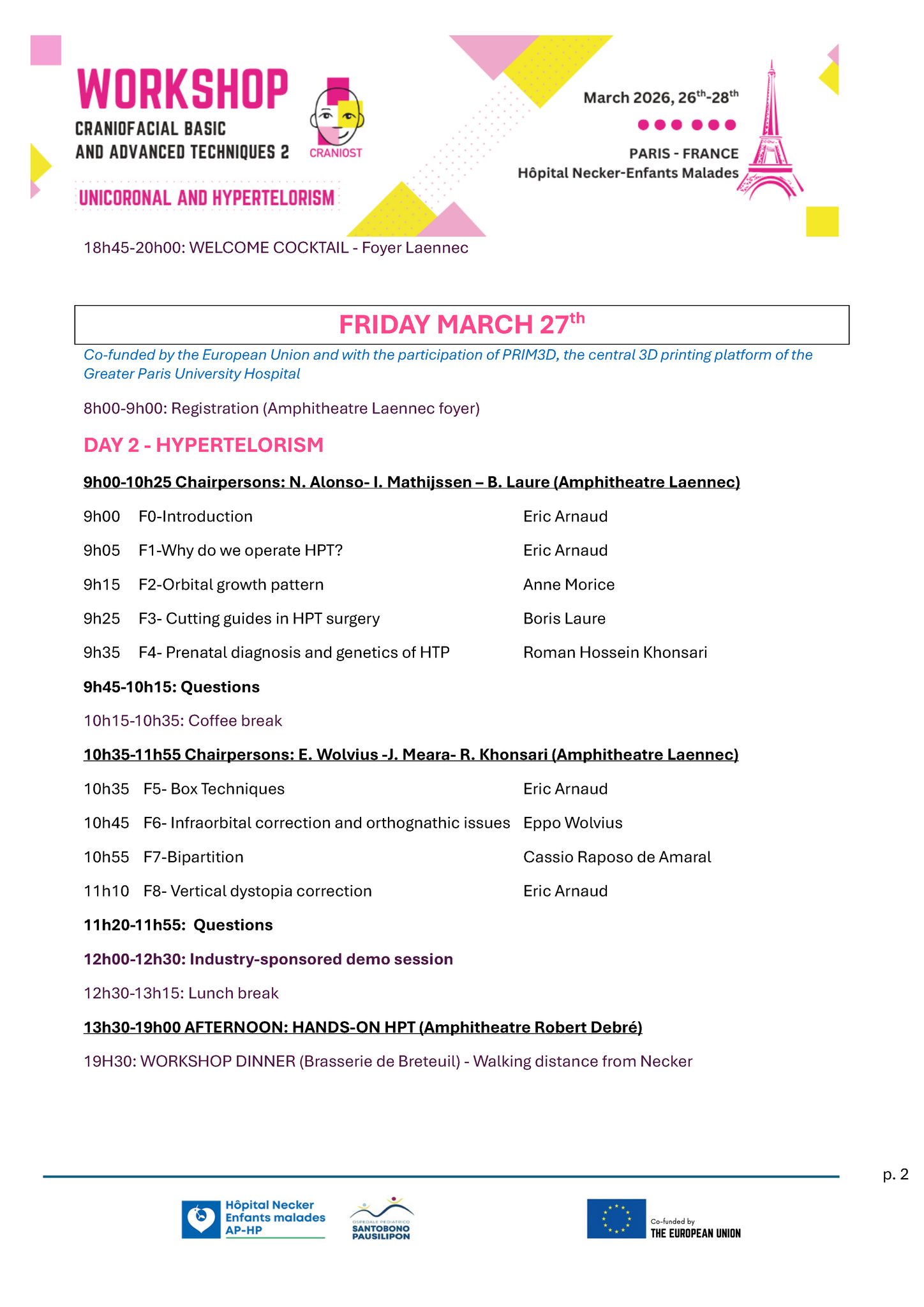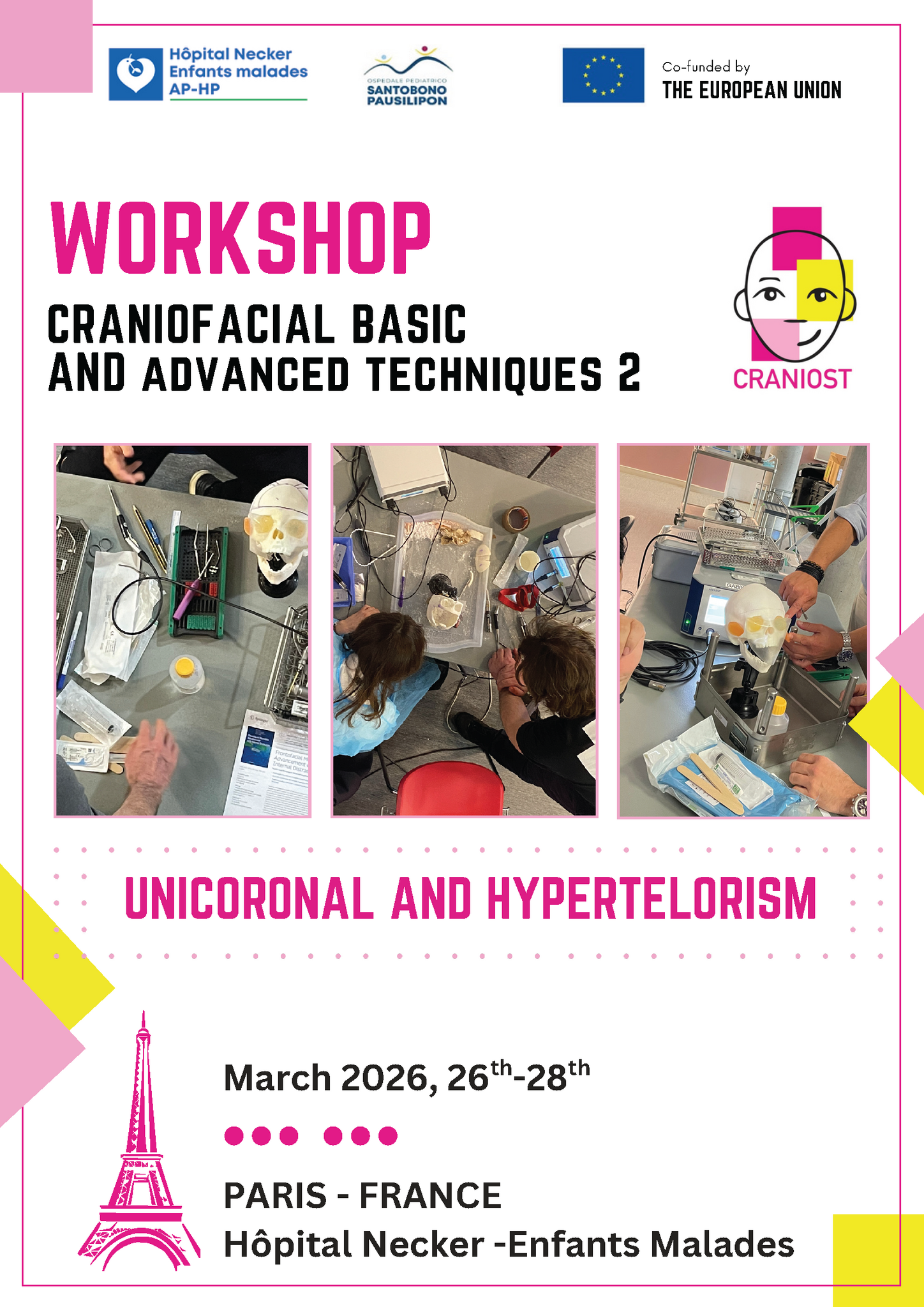 The International workshop: CRANIOFACIAL BASIC and ADVANCED TECHNIQUES 2 - UNICORONAL AND HYPERTELORISM, Paris - Necker Hospital (Hôpital Necker-Enfants malades), France 26/03/2026 - 28/03/2026, has been accredited by the European Accreditation Council for Continuing Medical Education (EACCME®) with 17.5 European CME credits (ECMEC®s).