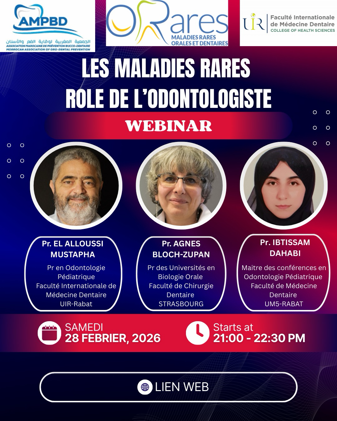 Un évènement organisé par l'Association Marocaine de Prévention Bucco-Dentaire, la Faculté Internationale de Médecine Dentaire de Rabat et le réseau O-Rares, avec la participation du Pr Agnès Bloch-Zupan.