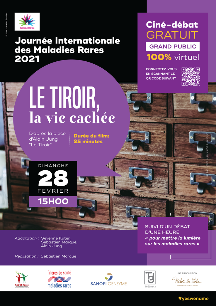 Dans le cadre de l‘édition 2021 de la Journée Internationale des Maladies Rares, la Filière AnDDI-Rares a proposé deux ciné-débats gratuits et 100% digitaux autour du film tiré de la pièce de théâtre "Le Tiroir - La Vie cachée".