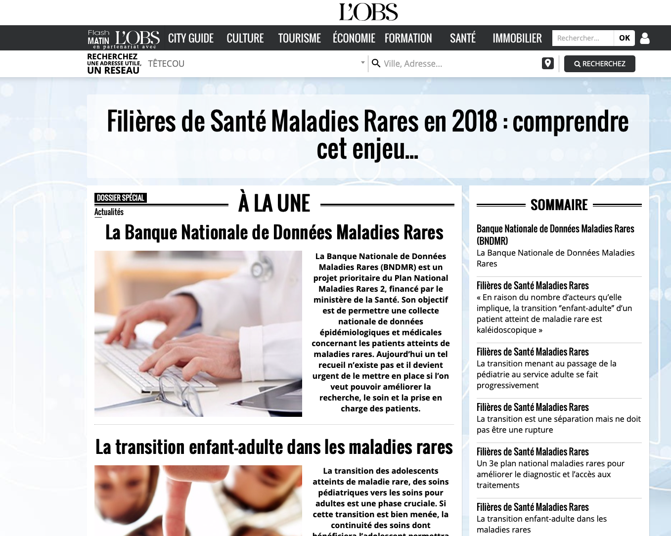 Chaque mois en 2018, les Filières de Santé Maladies Rares ont publié des articles dans la rubrique Flash Matin du Nouvel l'Obs.