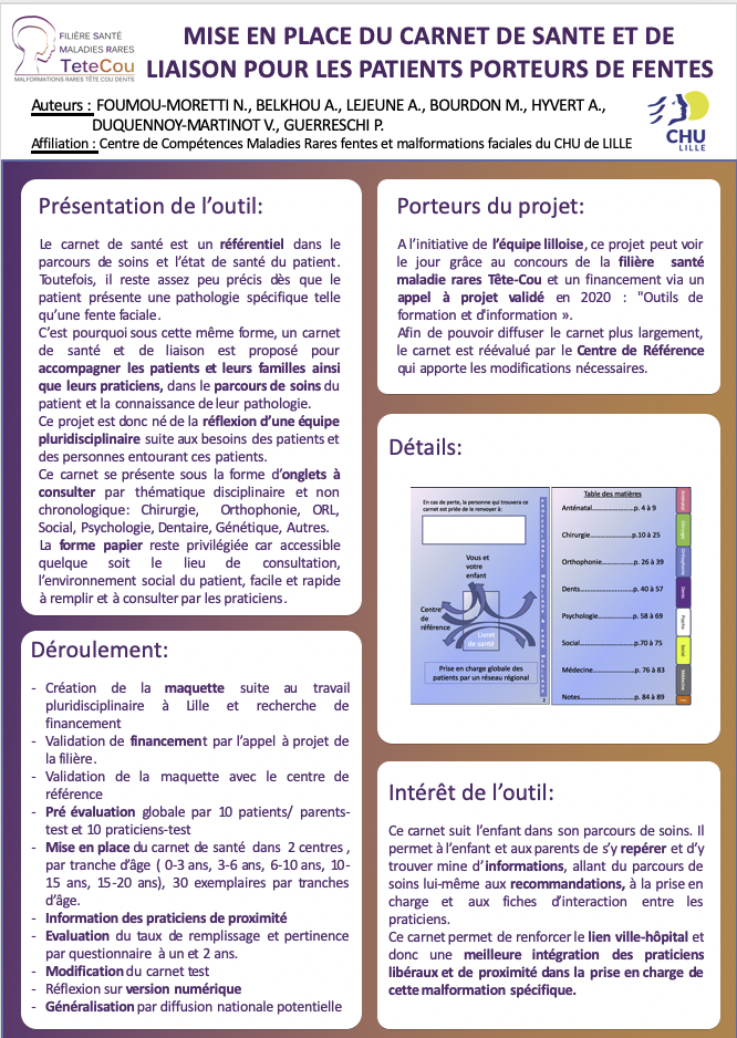 Poster Livret d'information alimentation et fentes labio-palatines - Lauréat de l'appel à projets "Outils de formation et d'information"