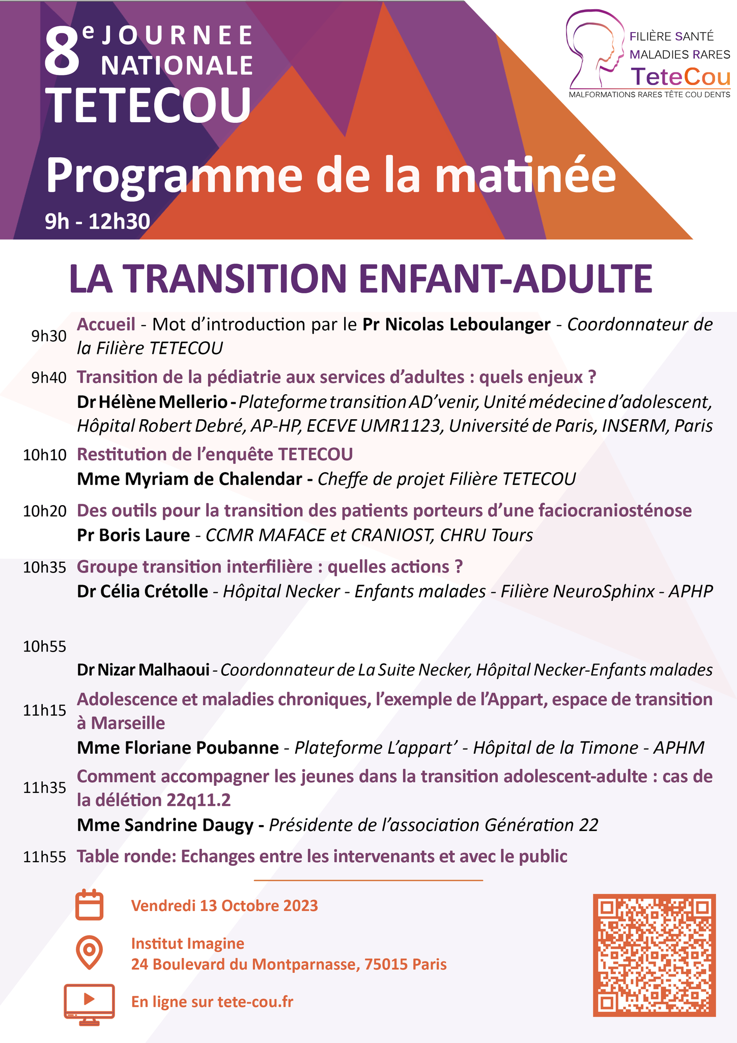 La 8e Journée Nationale de la Filière TETECOU s'est tenue le vendredi 13 Octobre 2023, à l'Institut Imagine (Paris) et en ligne.