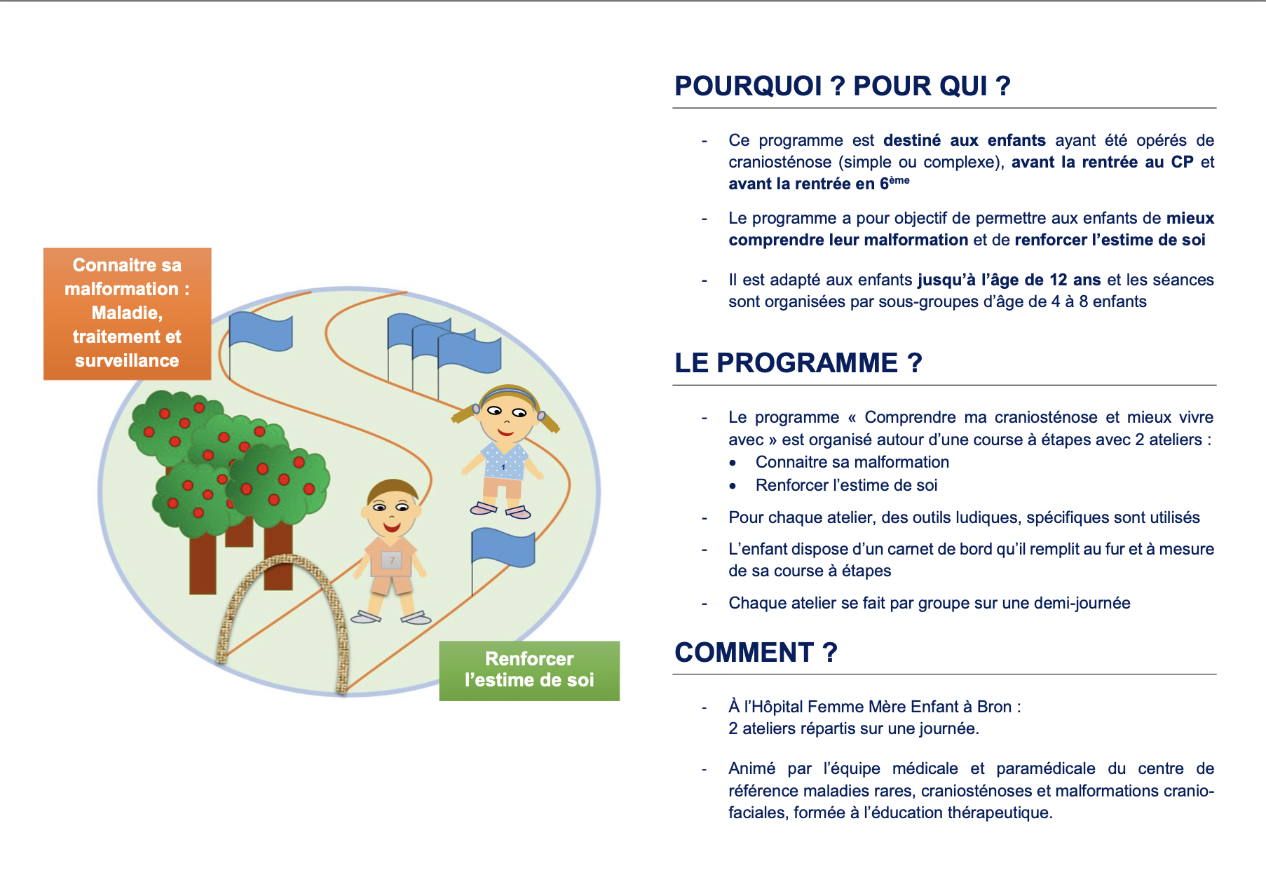 Ce programme est destiné aux enfants jusqu'à l'âge de 12 ans ayant été opérés d'une craniosténose.
