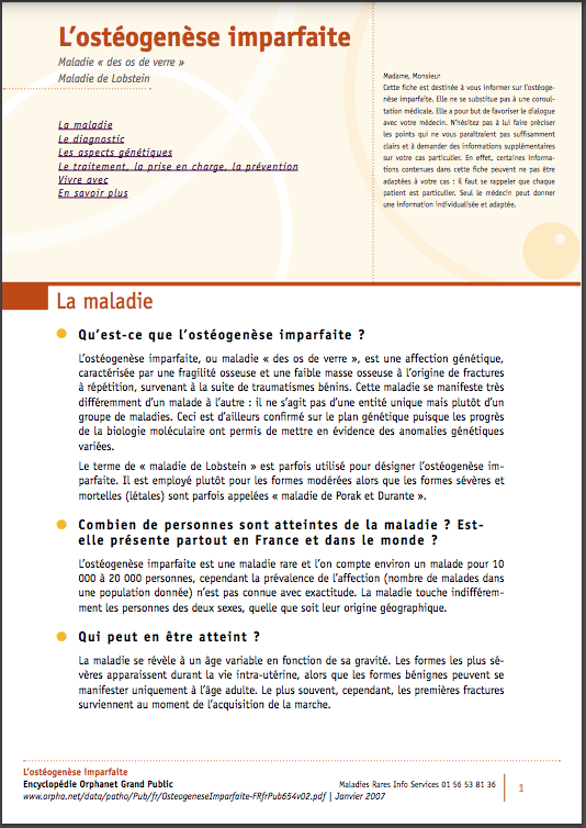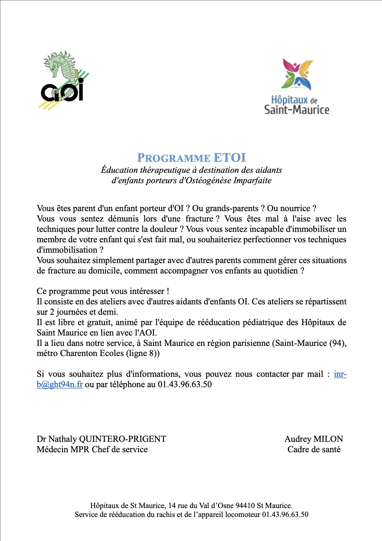 Ce programme est destiné aux patients porteurs d'ostéogenèse imparfaite (enfants, ados, jeunes adultes) ainsi que leurs proches (parents, grands-parents ou nourrice).