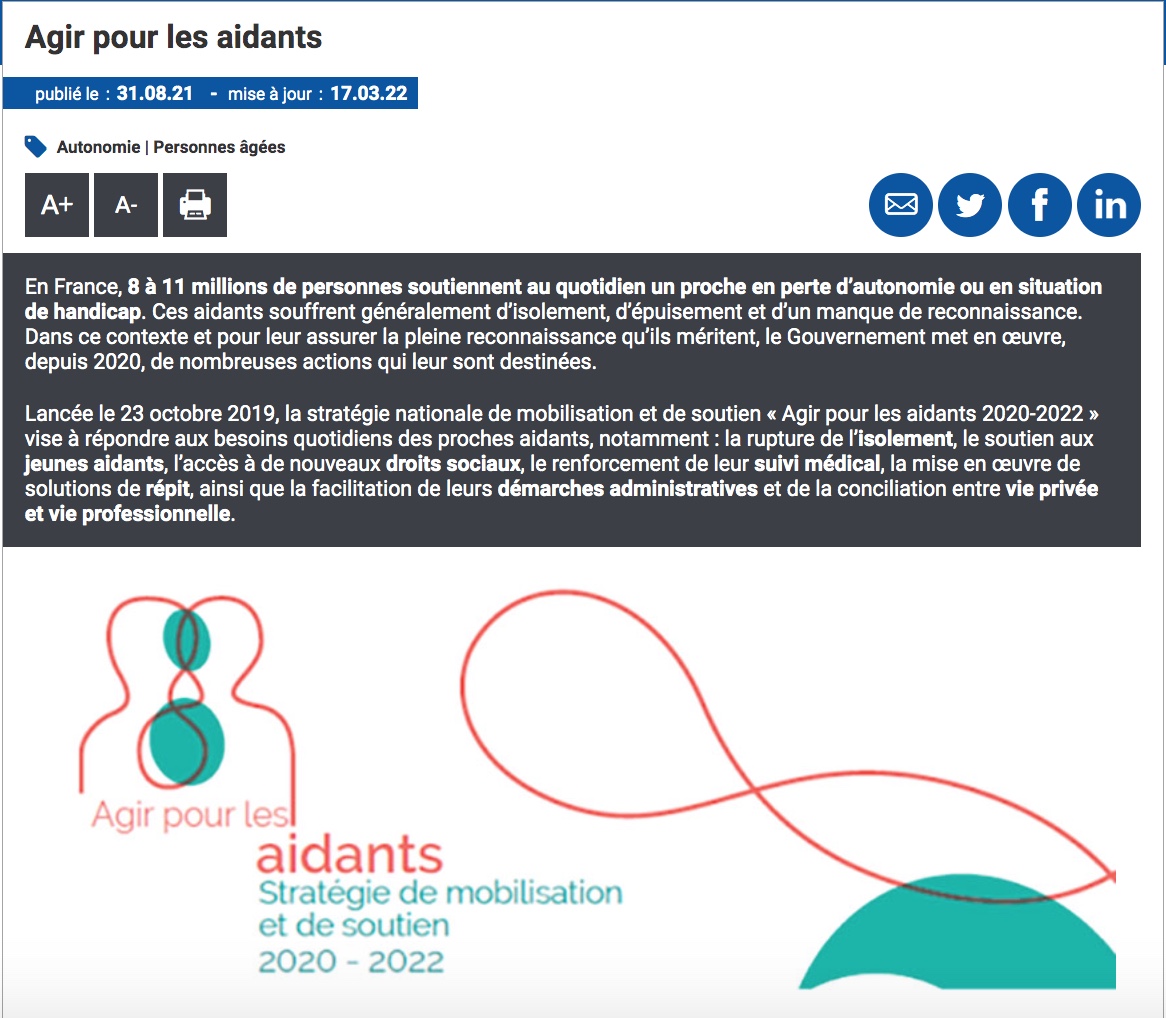 Aides et prestations pour les proches (aidants familiaux/proches aidants) : pages 97 à 100