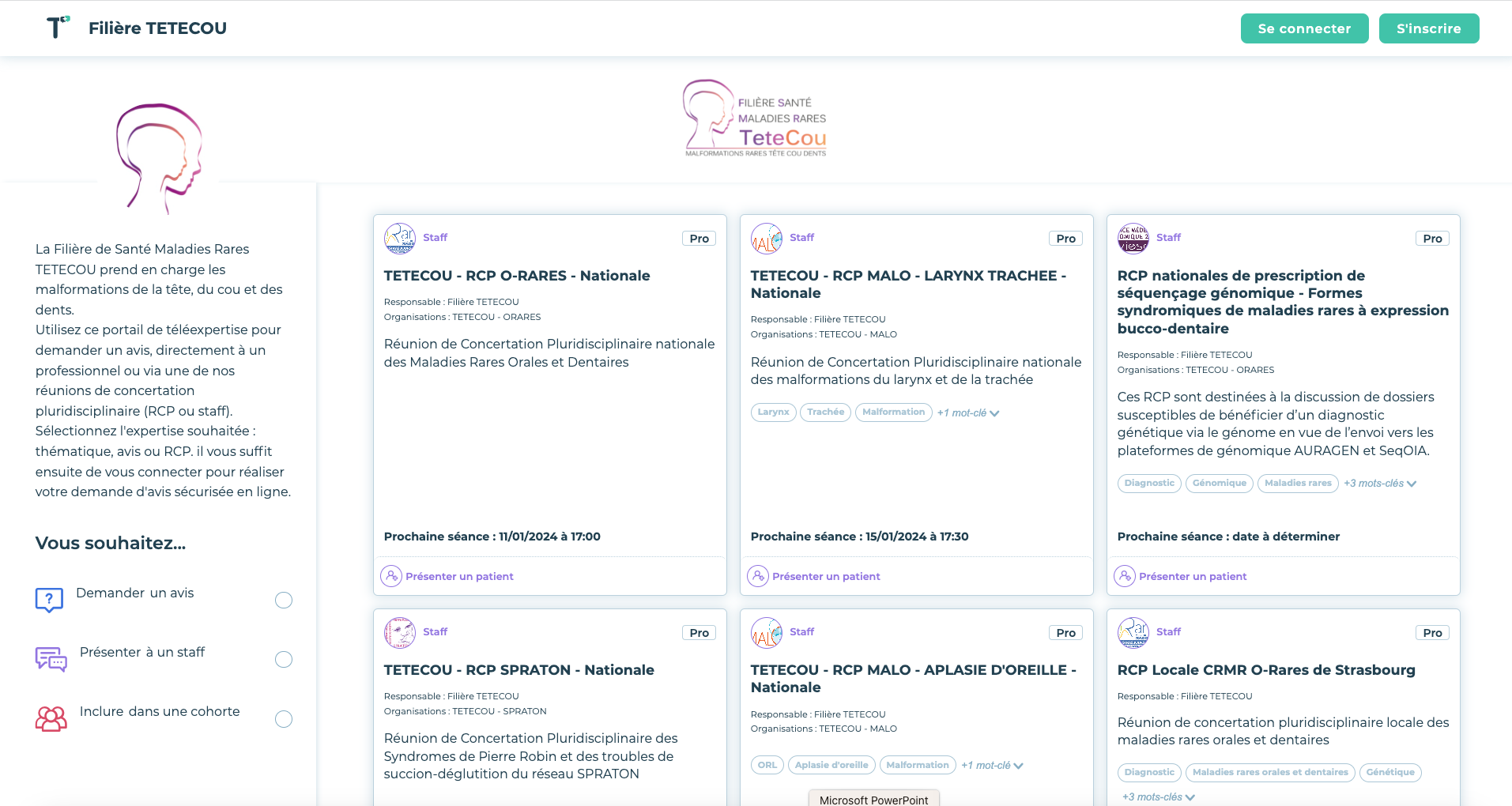 Le logiciel SKEMEET (anciennement ShareConfrère) est l'outil choisi par la Filière TETECOU pour réaliser ses RCP.