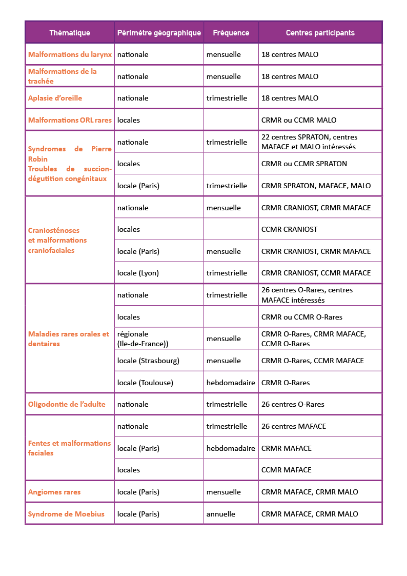 De nombreuses RCP locales sont organisées dans les centres (CRMR et CCMR) de la Filière.