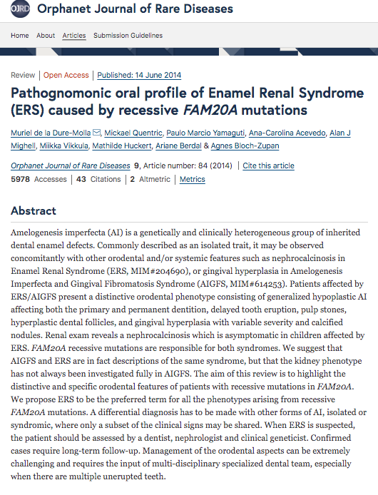Pathognomonic oral profile of Enamel Renal Syndrome (ERS) caused by recessive FAM20A mutations