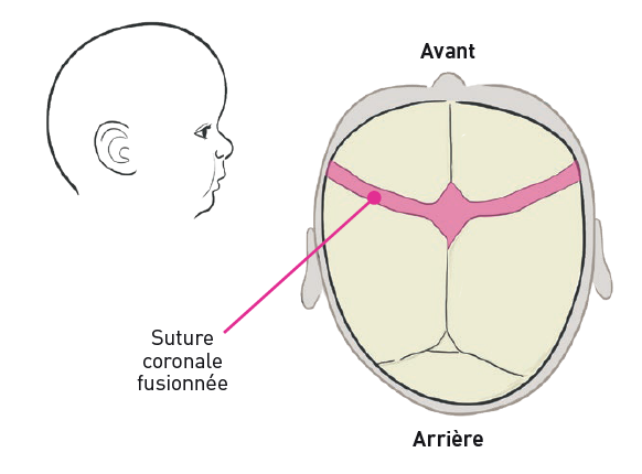 Il s'agit d'une craniosténose multi-suturaire car les deux sutures coronales sont impliquées (craniosténose bicoronale ou craniosténose coronale bilatérale).