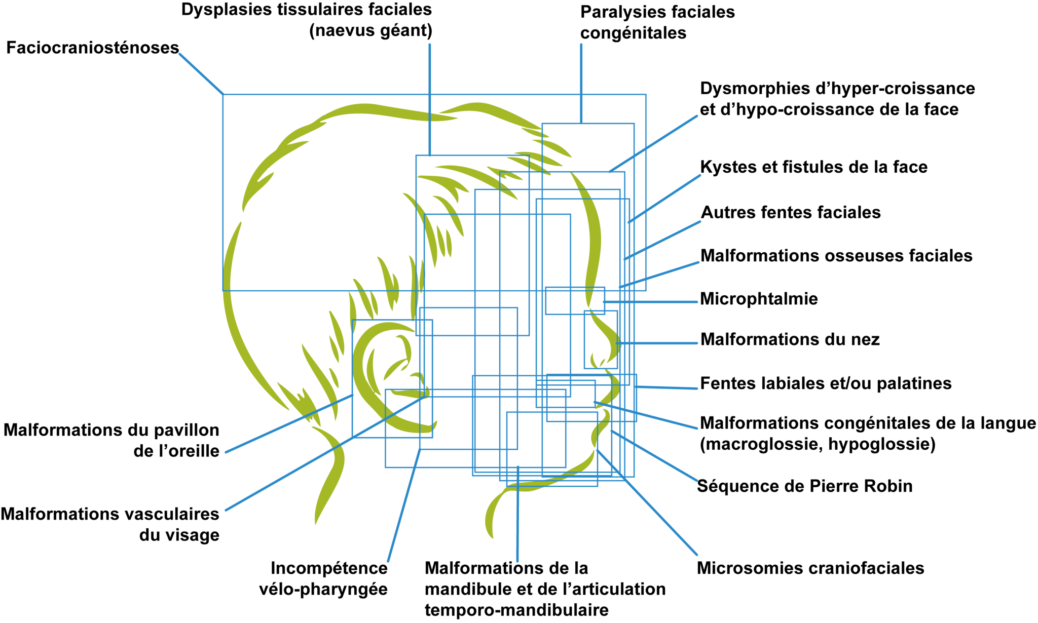 Les malformations faciales sont un ensemble de pathologies congénitales (présentes dès la naissance) rares, présentes de manière isolées ou associées à d'autres anomalies dans le cadre de syndromes.