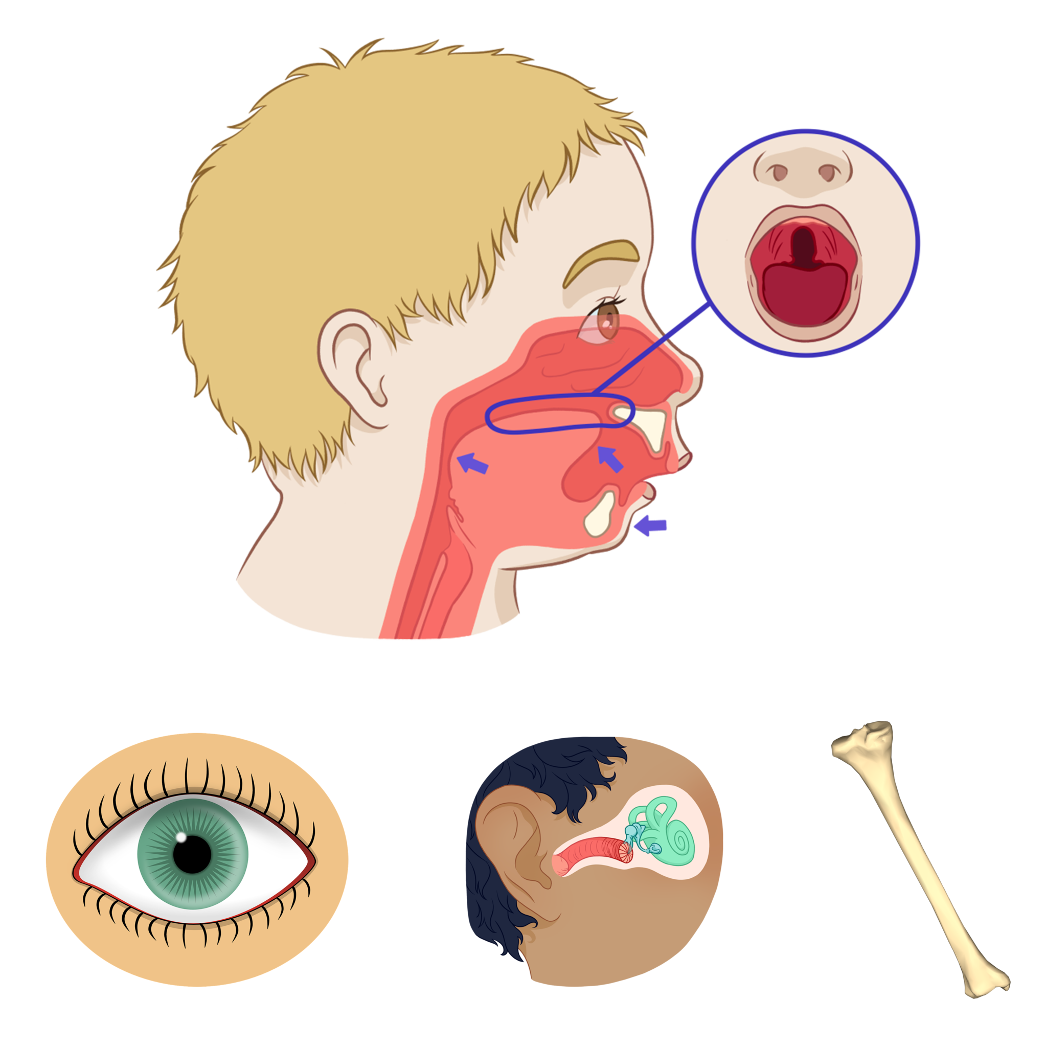 Illustrations réalisées par Cassandra Vion, illustratrice scientifique et médicale www.cassandravion.com. Droits cédés exclusivement pour le site internet de la Filière de Santé Maladies Rares de la Tête, du Cou et des Dents (TETECOU) et de ceux de ses centres de référence (CRANIOST, MAFACE, MALO, SPRATON) qu’il héberge