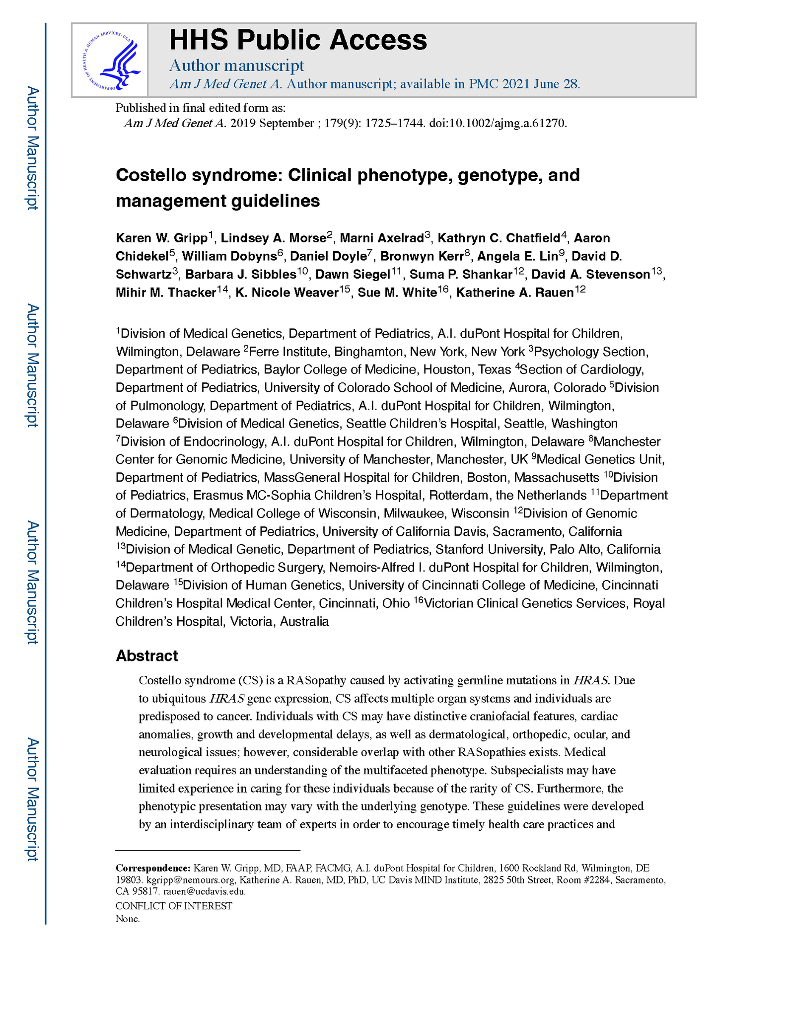 C'est pourquoi, le syndrome de Costello est classé dans les RASopathies, un ensemble de syndromes génétiques liés à une dérégulation de la voie de signalisation RAS/MAPK.