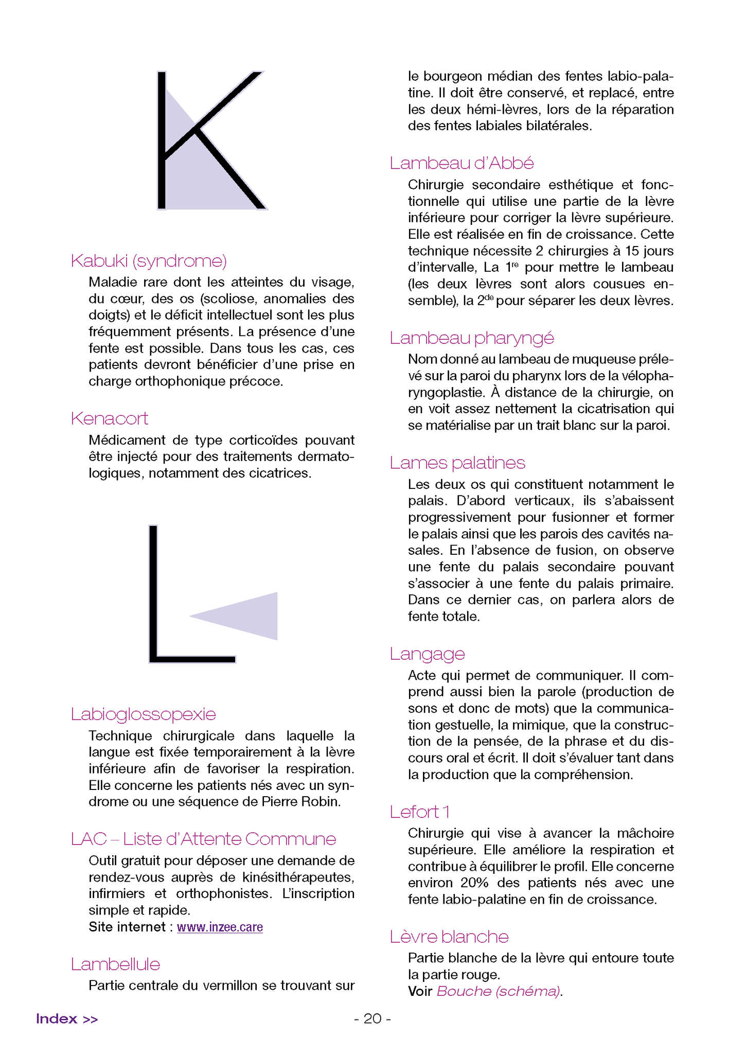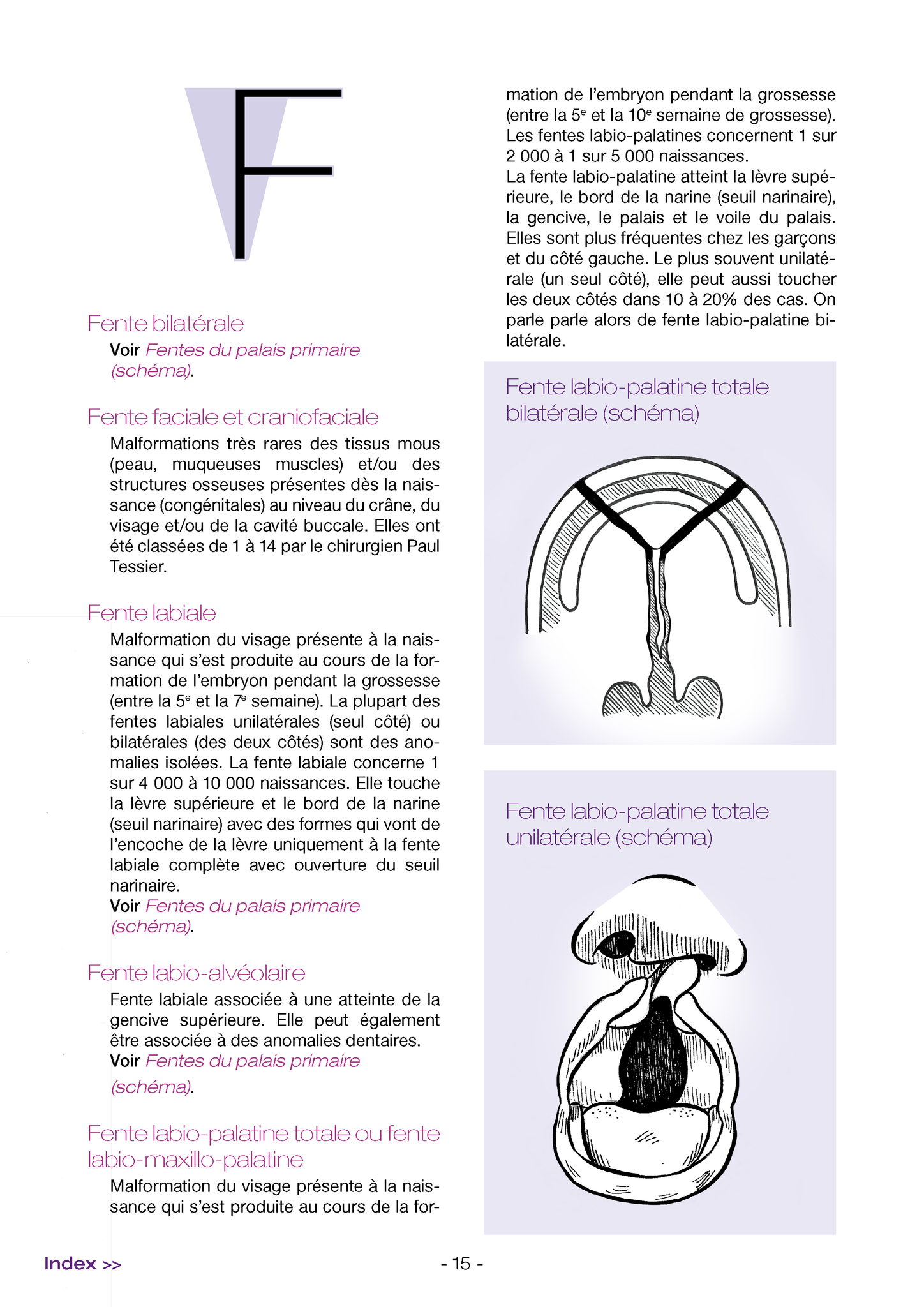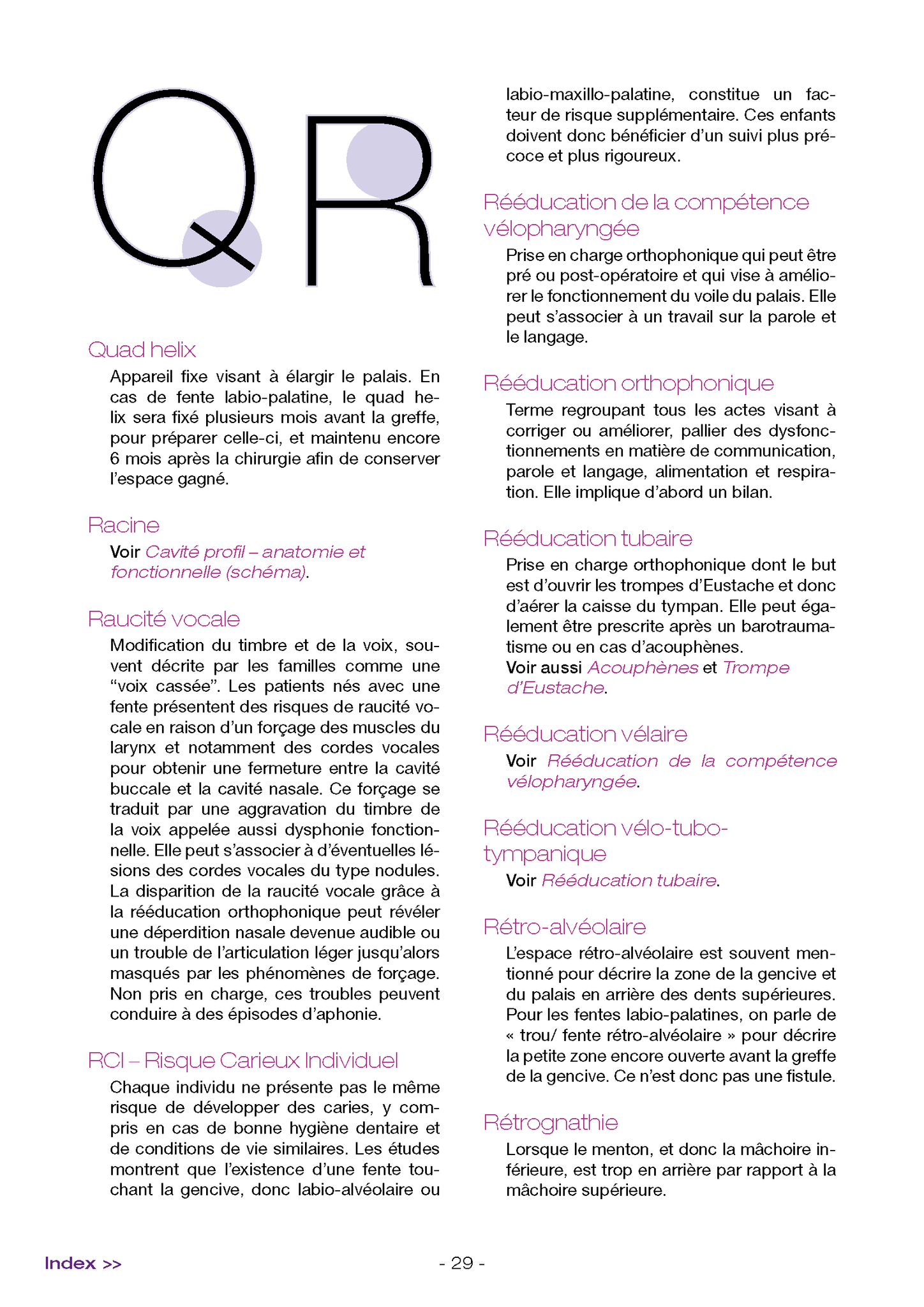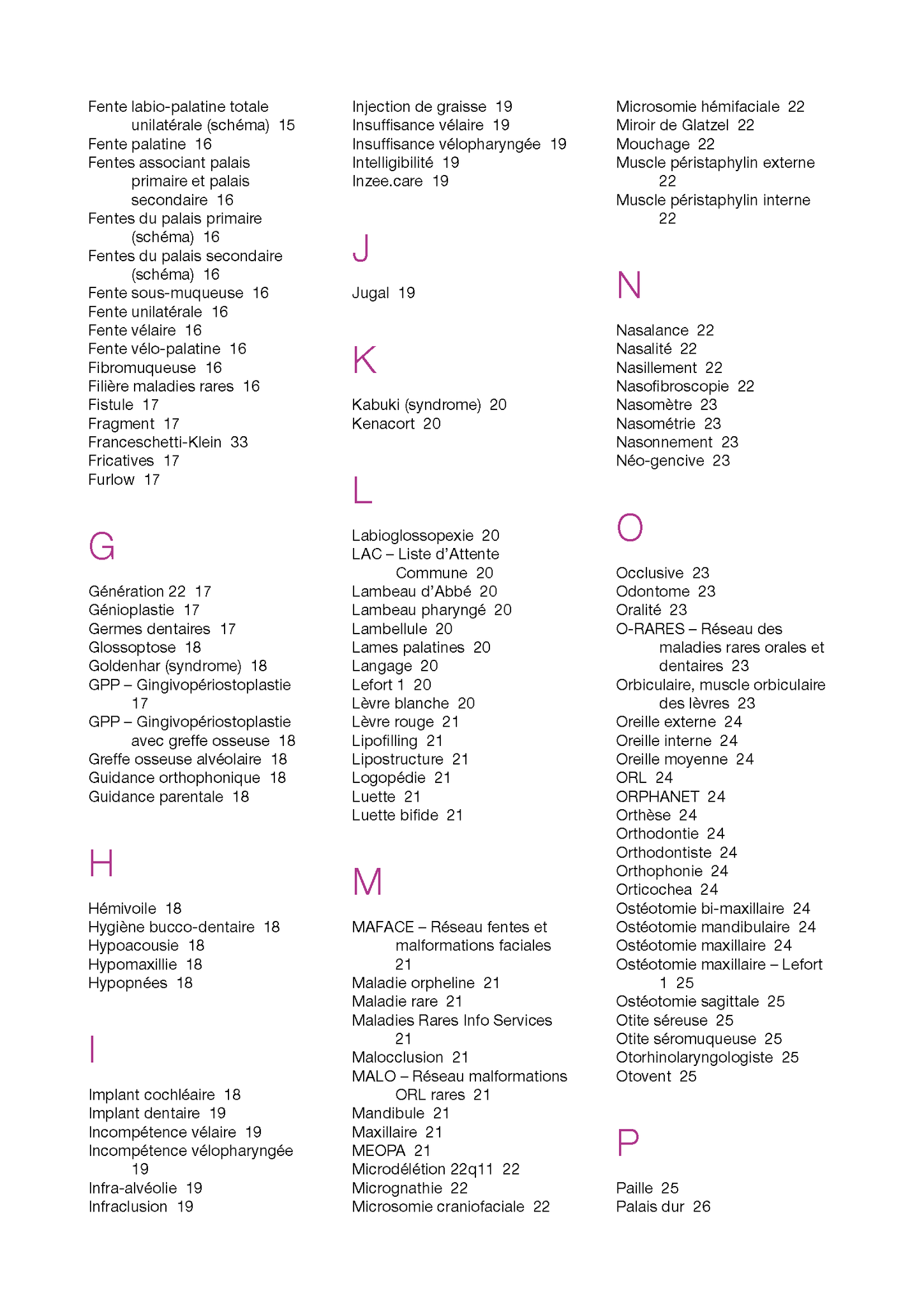 Des termes décrivant les structures de prise en charge des patients porteurs de fentes viennent compléter le livre.