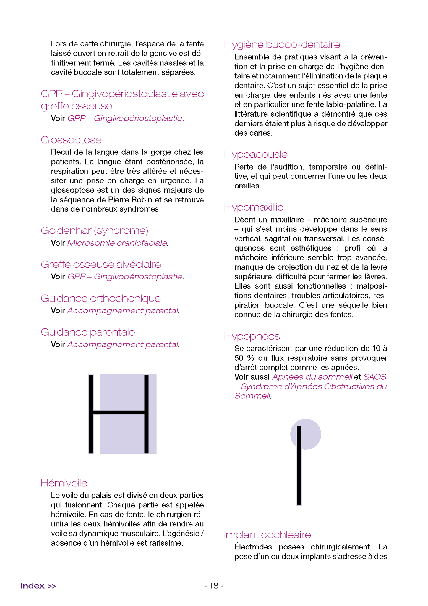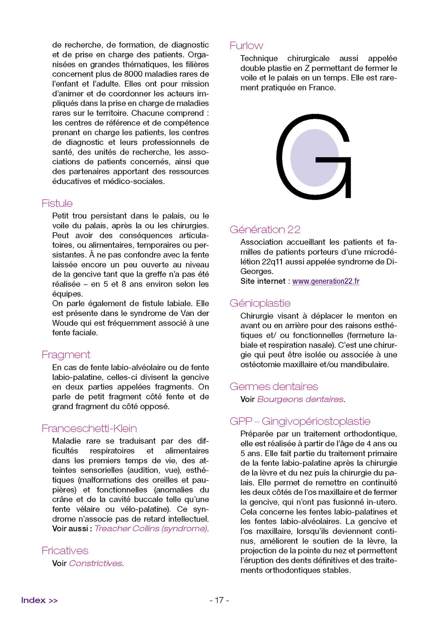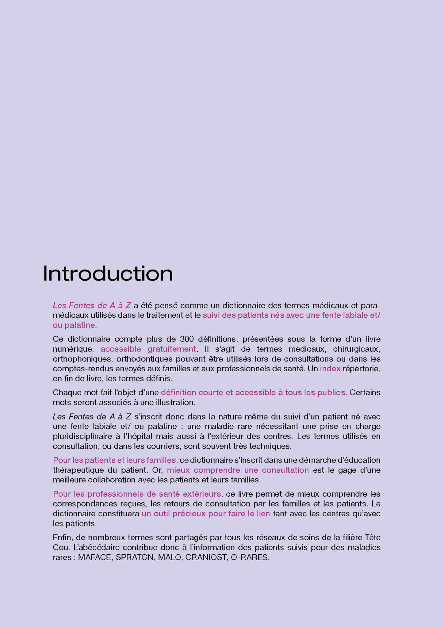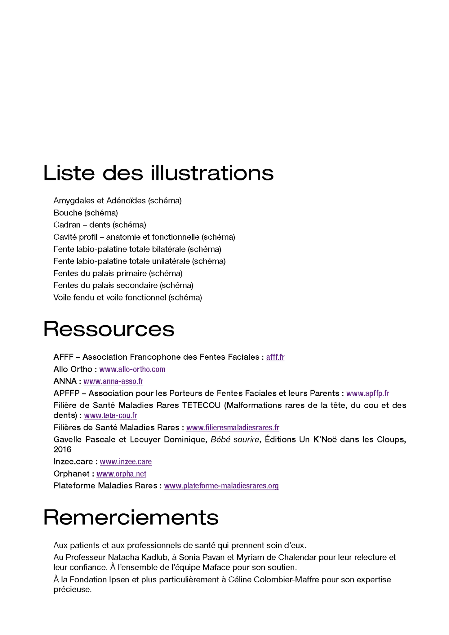Des termes décrivant les structures de prise en charge des patients porteurs de fentes viennent compléter le livre.