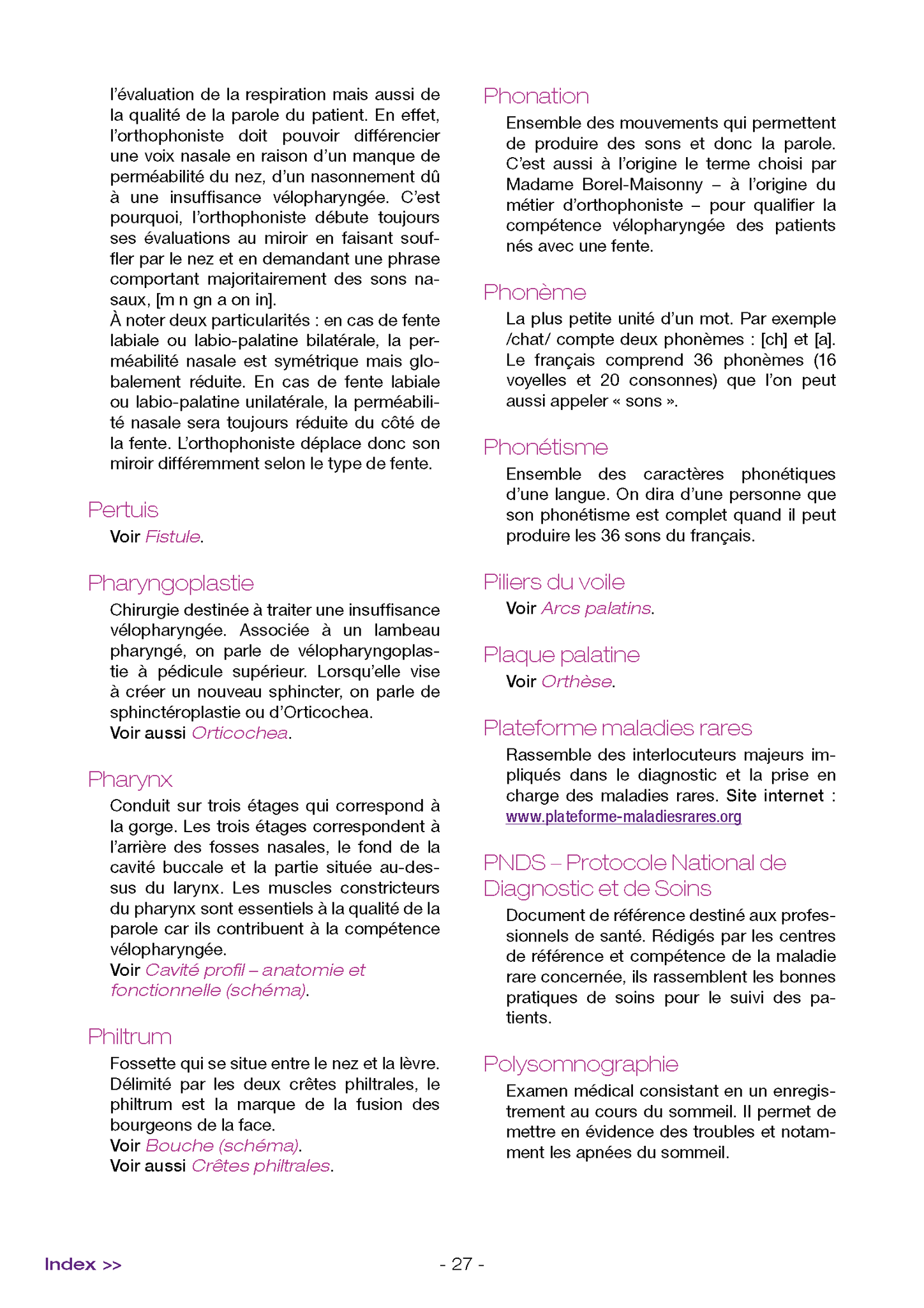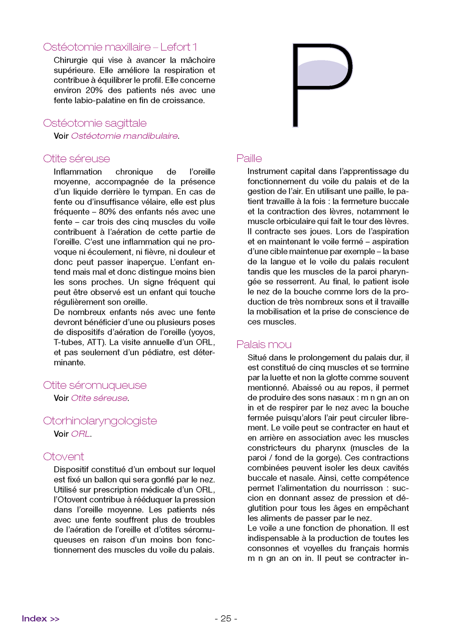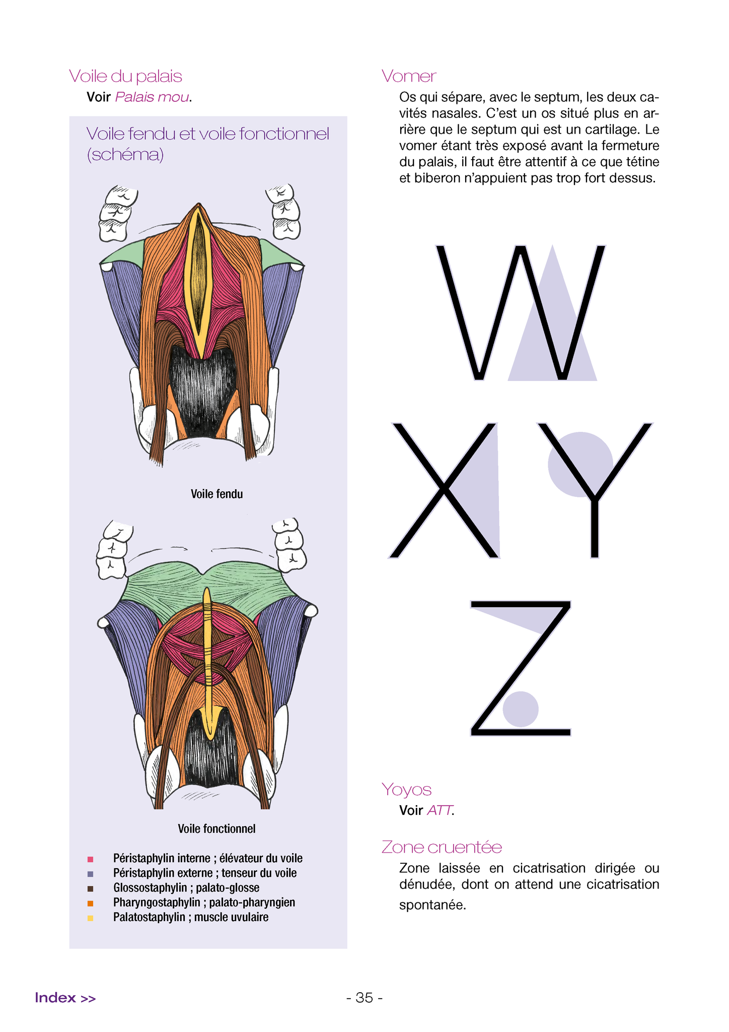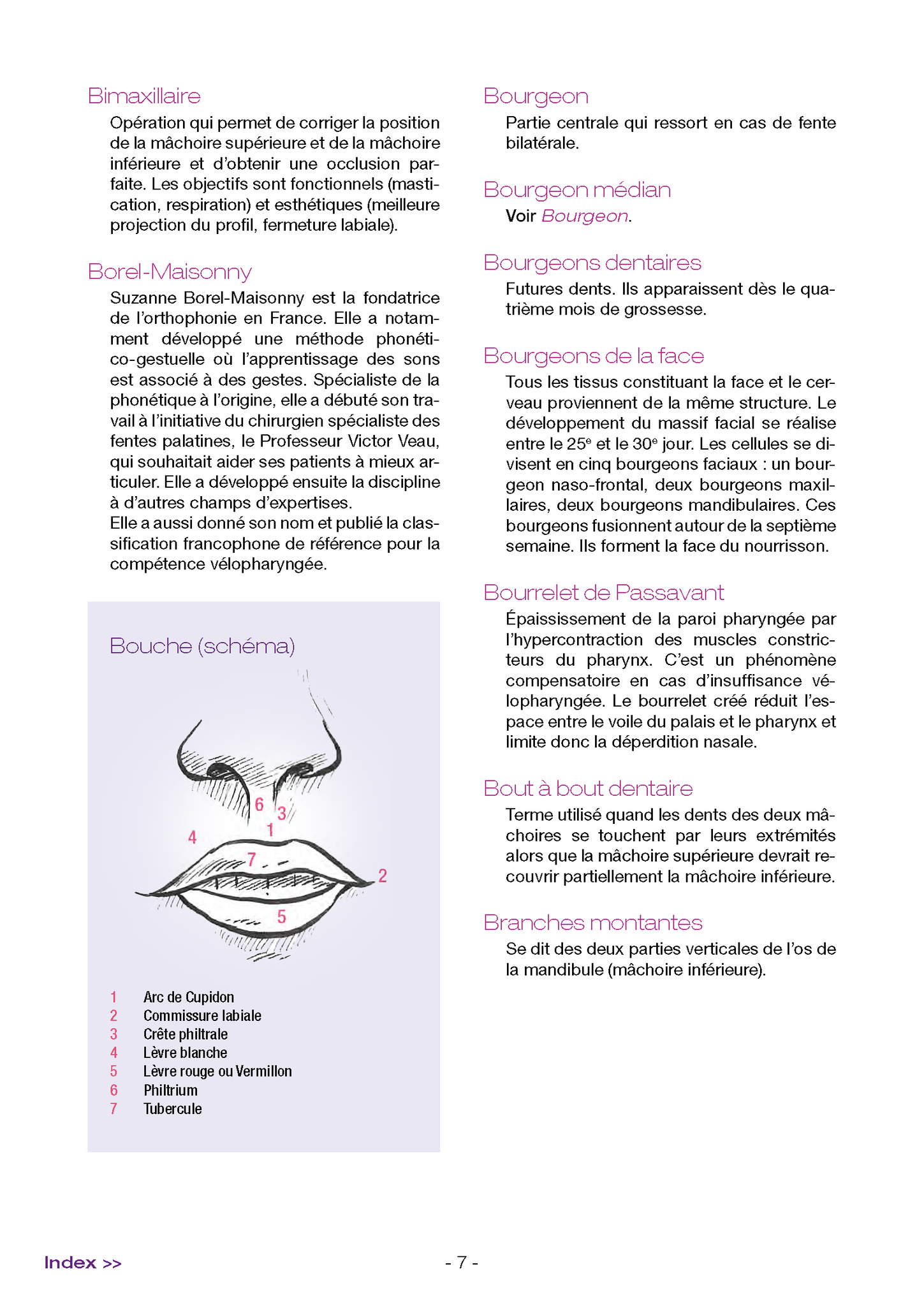 Des termes décrivant les structures de prise en charge des patients porteurs de fentes viennent compléter le livre.