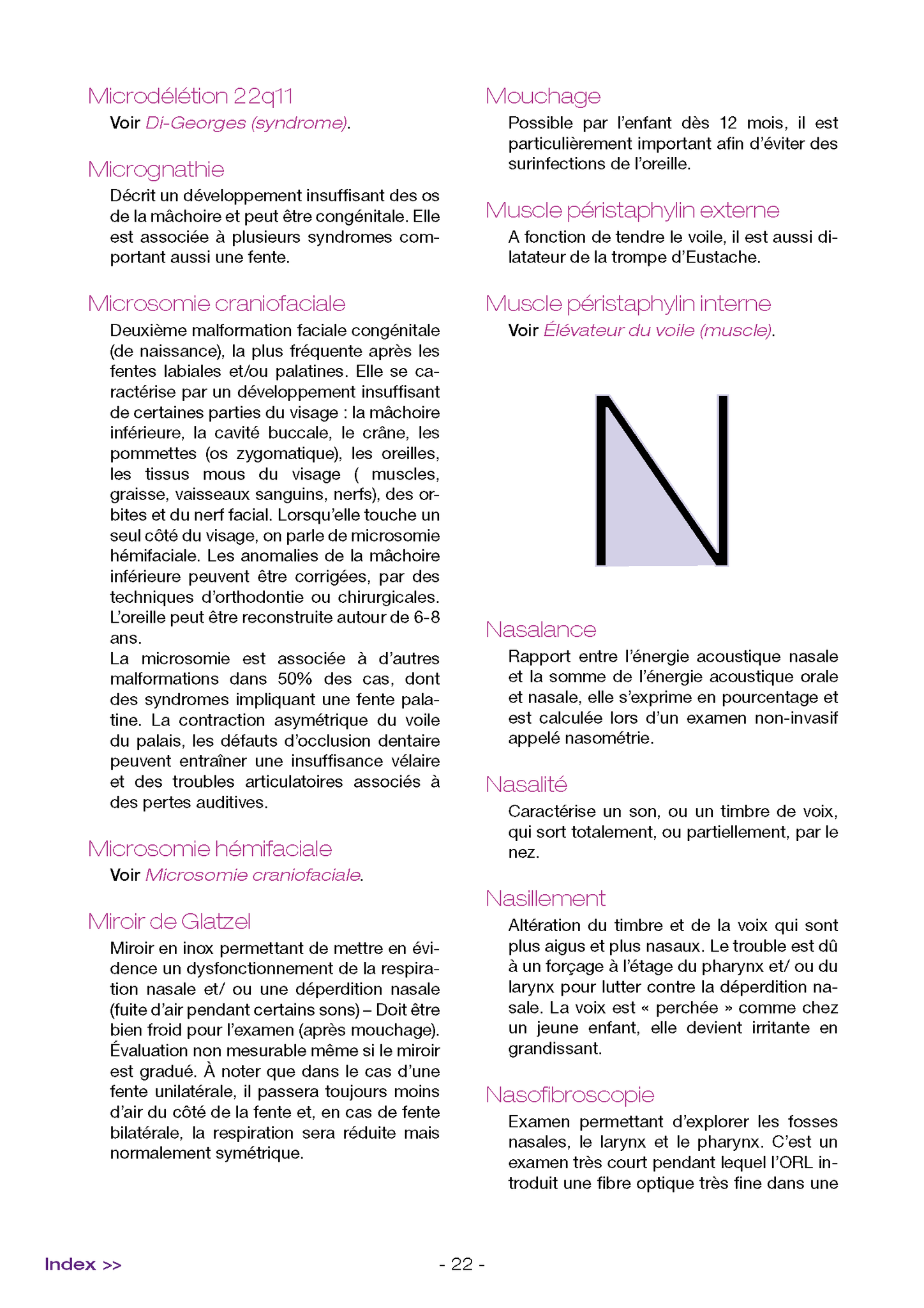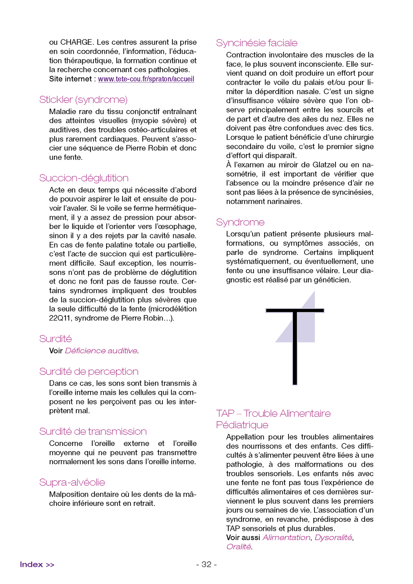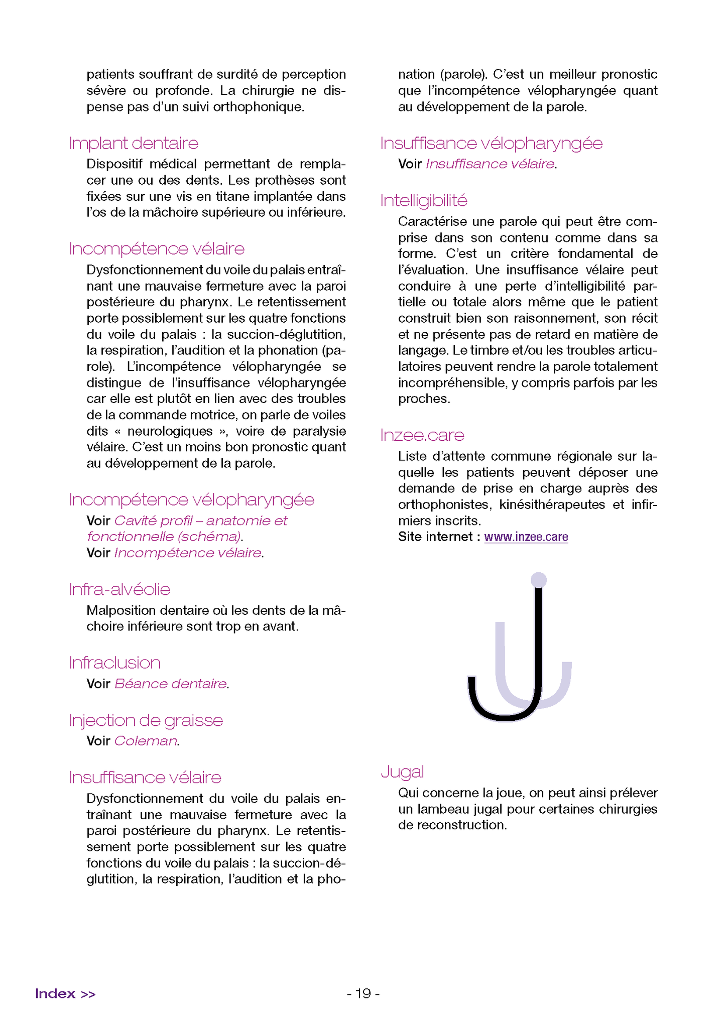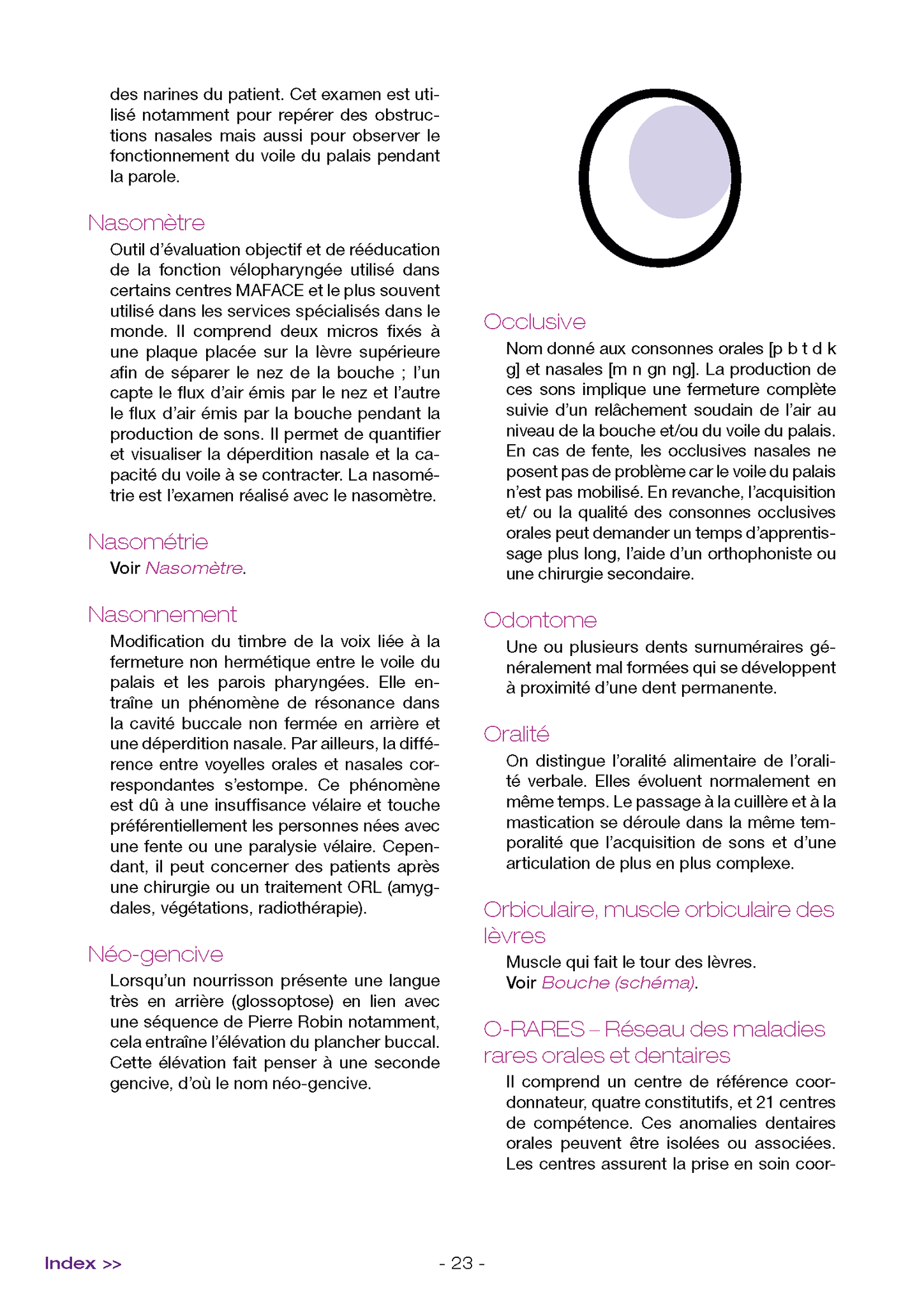 Des termes décrivant les structures de prise en charge des patients porteurs de fentes viennent compléter le livre.