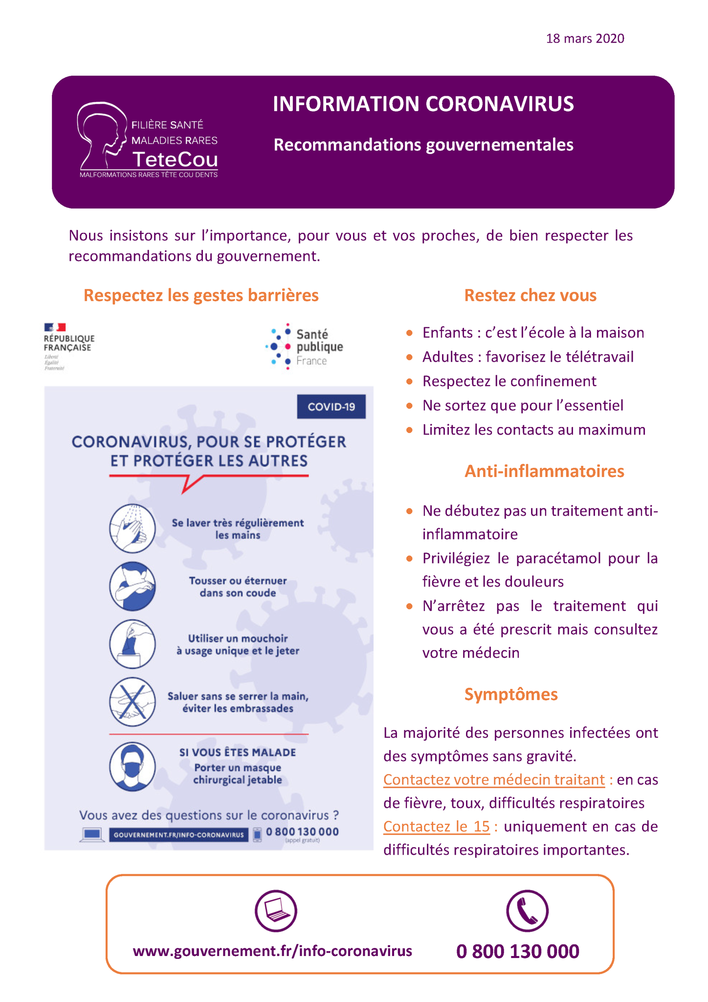 Informations du Gouvernement : liste des maladies rares à vaccination prioritaire