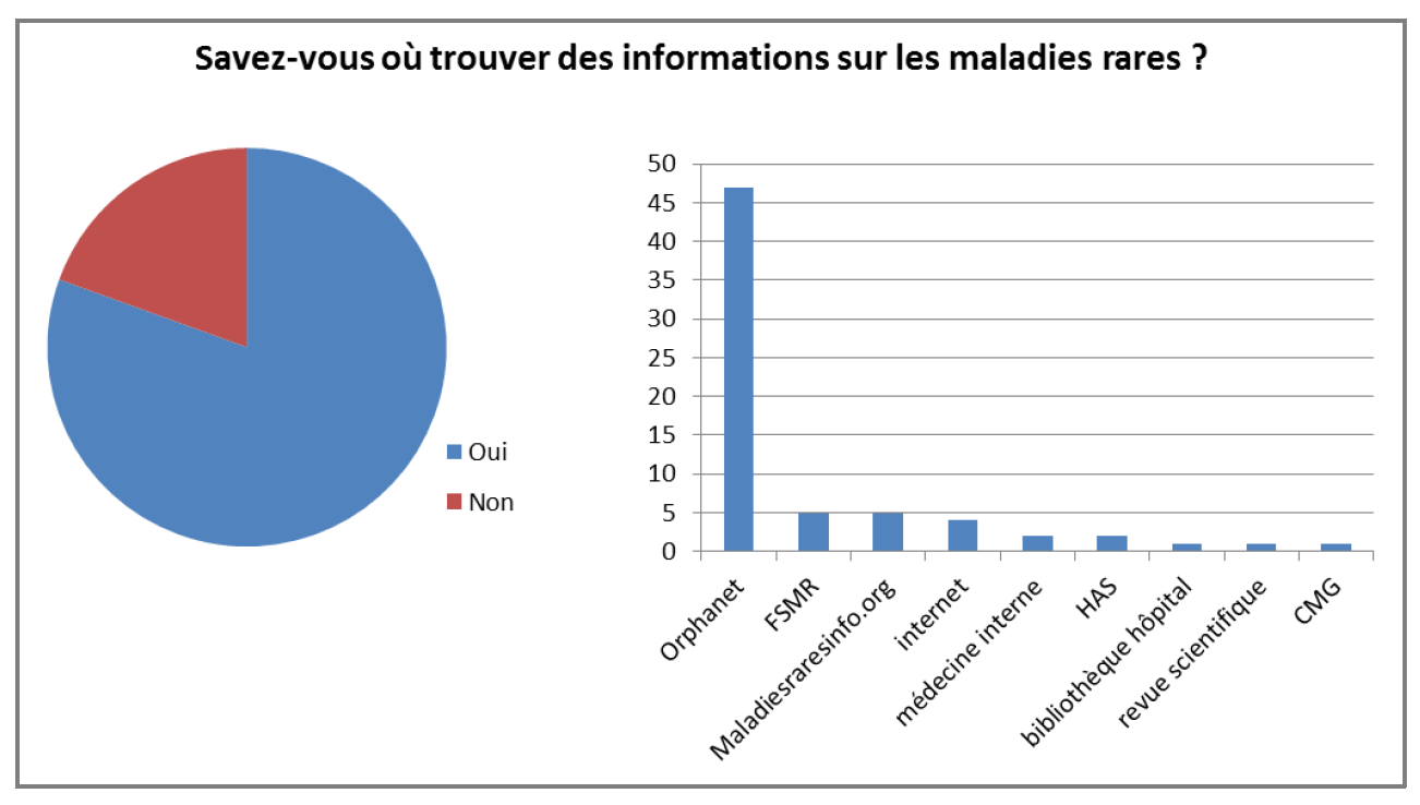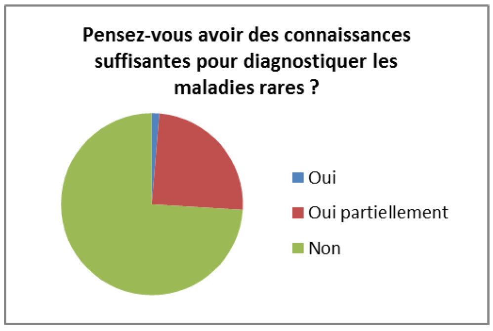 En résumé, les médecins généralistes estiment pour 74% d'entre-eux ne pas avoir de connaissances suffisantes pour diagnostiquer les maladies rares. Ils savent où trouver l'information (à 80%) : leur principale source d'information est Orphanet.