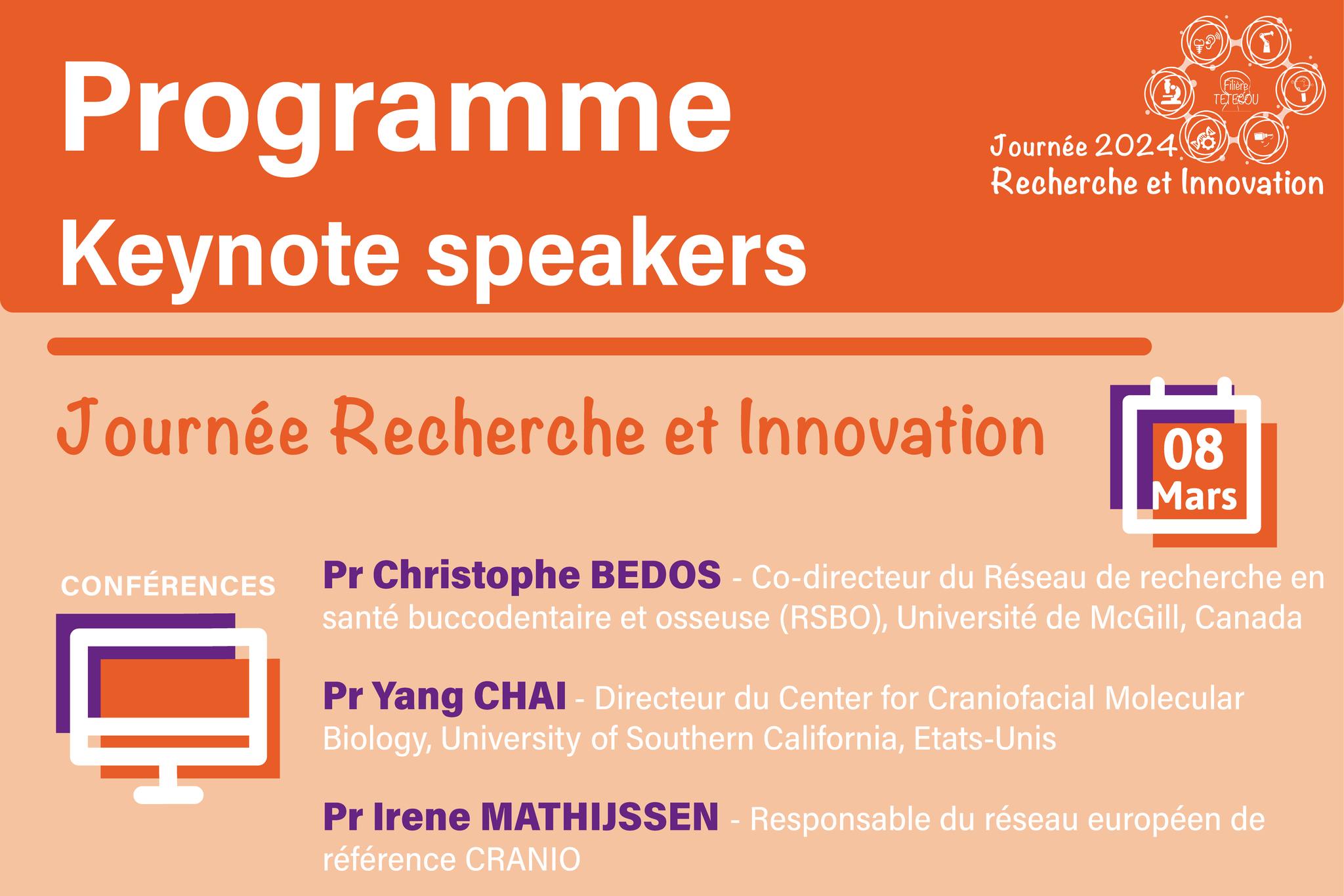 10e journée de la Société Internationale de Kinésithérapie Linguale Oro-Maxillo-Faciale (SIKLOMF)12es Assises de Génétique Humaine et Médicale 9e Journée de Printemps de la Société Française de Stomatologie, Chirurgie Maxillo-Faciale & Chirurgie Orale (SFSCMFCO)26es Assises Face et CouCongrès de l'Association Francophone des Fentes Faciales (AFFF)12e Congrès de l'European Cleft Palate Craniofacial Association (ECPCA)The European Human Genetics ConferenceSymbiosium Génération 228e édition des Essentiels de la CMFCongrès de la Société Française de Pédiatrie (SFP)16e congrès mondial de l'International Cleft Lip and Palate Foundation (ICPF)Colloque scientifique régional : Recherche Maladies RaresFormation d'orthophonie - 1re SessionFormation d'orthophonie - 2e SessionFormation d'orthophonie - 3e SessionFormation d'orthophonie - 4e SessionFormation d'orthophonie - 5e SessionFormation d'orthophonie - 6e Session36e congrès de la Société Française des Chirurgiens Esthétiques Plasticiens (SOFCEP)12e Congrès de l'Association Française des Chirurgiens de la Face (AFCF)1er South African Comprehensive Cleft Care Workshop (CCCW) Congrès mondial de l'International Society for the Study of Vascular Anomalies (ISSVA)9e Journée Nationale de la Filière TETECOU Ehlers-Danlos Society Global Learning ConferenceJournée nationale des fentes facialesColloque scientifique annuelColloque scientifique régionalWebconférence 'Maladies rares : des traitements pour tous ?'11e Edition des Nouvelles Journées d’Échographie Fœtale (NJEF)81e Réunion annuelle de l'American Cleft Palate-Craniofacial Association (ACPA)71e Congrès de la Société Française de Chirurgie Orale (SFCO)Formation d'orthophonieFormation d'orthophonieFormation d'orthophonieFormation d'orthophonieWebinaire de formation en orthophonieCongrès SETE24 - Liège12th European Conference on Rare Diseases & Orphan ProductsJournée parcours des personnes en situation de Handicap Rare en Île-de-FranceJournée transition 'Devenir adulte avec ma maladie'Regular MeetingFormation au Facile à Lire et à Comprendre (FALC)Formation au Facile à Lire et à ComprendreCongrès de l'European Calcified Tissue Society (ECTS)27th Congress of the European Association for Cranio Maxillo Facial SurgeryCongrès du Collège de Médecine Générale France (CMGF)European Lecture Series VI Rencontre annuelle de l'ASHG 202426e Journées de l'OrthodontieCongrès annuel Alliance maladies raresTroisième édition des Rencontres Sciences Humaines et Sociales et Médecine GénomiqueWebinaire de sensibilisation aux maladies raresEuropean Lecture Series VI (Sept 2023-24)25e séminaire d'éducation thérapeutiqueERN CRANIO 9th annual meetingMOOC Health Data Ethics & Regulatory Frameworks in Rare Disease ResearchJournée d'échanges autour de l'extension du dépistage néonatalAppearance Matters ConferenceJournée transition maladies rares Communauté de Pratiques délétion 22q11Journée multidisciplinaire - Les Asymétries10e Congrès SFMPP 2024Formation validante à l'éducation thérapeutique du patient (Niveau I)Conférence de l'European Society of Craniofacial Surgery (ESCFS 2024)Formation analyse de Delaire et dysmorphoses dento-faciales28e Journée Nationale de Perfectionnement en Soins Infirmiers de Chirurgie Pédiatrique 58e Journées Parisiennes de PédiatrieWebinaire 'Utilisation secondaire des données maladies rares & IA : Les Data Challenges comme catalyseur d'innovation'2e Journée Thématique sur les Thérapies InnovantesInternational Surgical Sleep Society 2024 Educational Update Journée thématique 'Les dispositifs médicaux : de l'aspect réglementaire à la mise sur le marché' Formation 'Ce que vous avez toujours voulu savoir sur le SAOS de l’enfant et l’adolescent : comment le dépister, le prévenir et le traiter ?' 10e Journées de l'AIMOMCours : Innovative Therapies and Personalised Medicine for Rare DiseasesWebinaire 'L'expansion cutanée chez l'enfant' World Young Scientist Summit 2024Présentiel