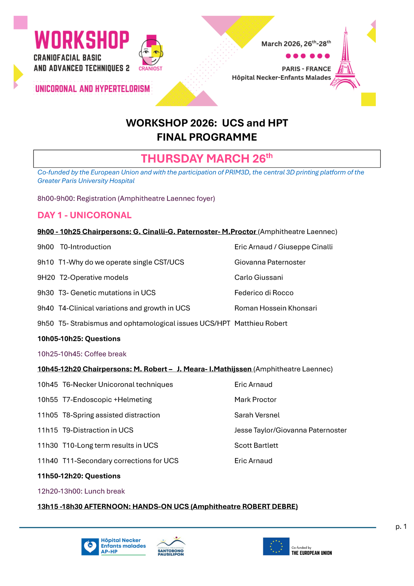 Organized by the French Reference Center for Craniosynostoses and Craniofacial Malformations (CRANIOST), in collaboration with an international expert committee, this workshop will allow craniofacial surgeons to learn unicoronal craniosynostosis correction procedures, and how to manage hypertelorism.