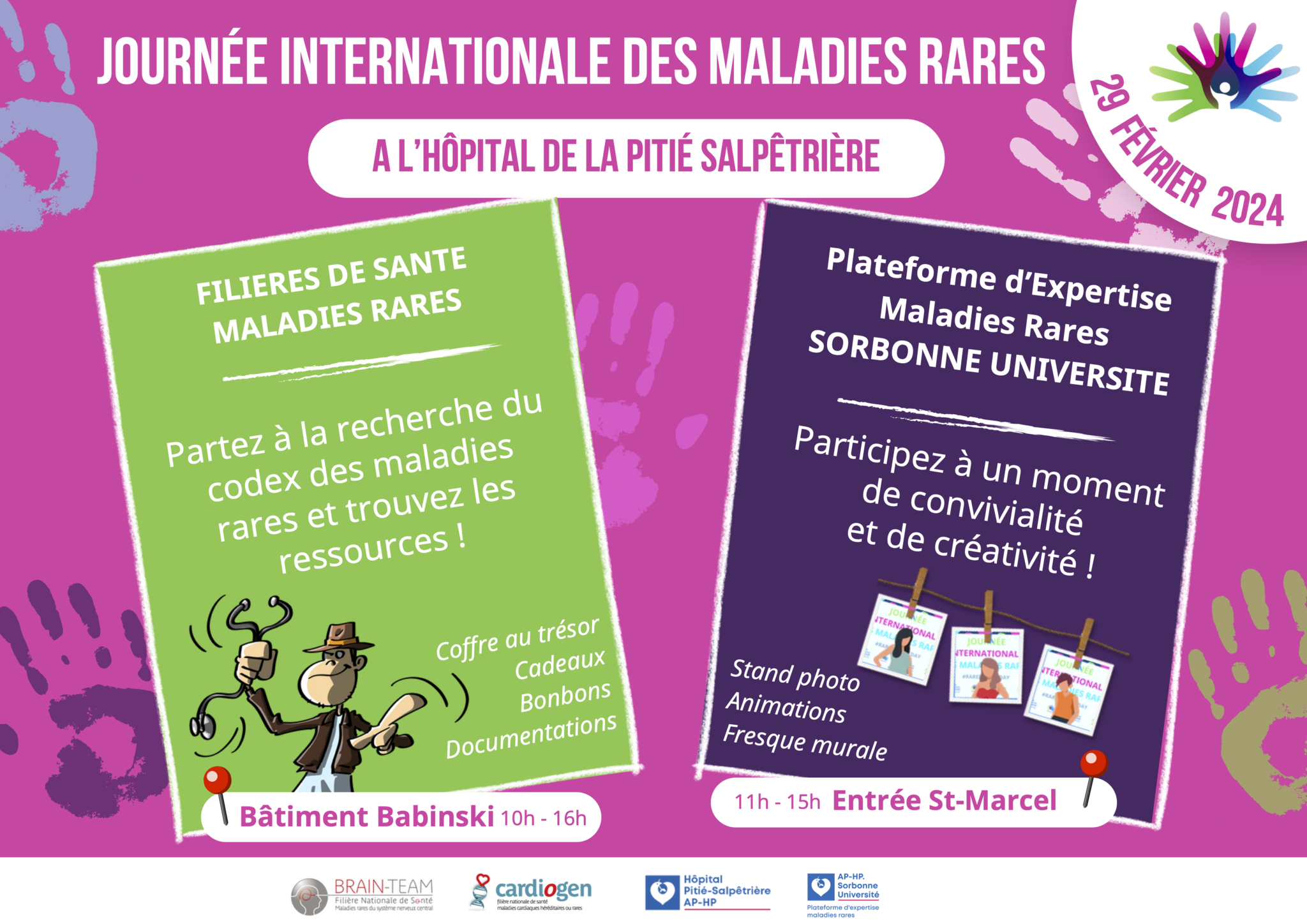 Dans le cadre de la journée internationale des maladies rares, la plateforme d’expertise maladies rares APHP Sorbonne Université organise la tenue de stands sur 4 hôpitaux.