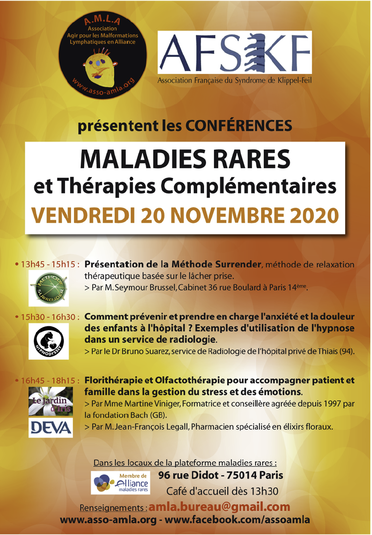 Poster Conférence "Maladies rares et thérapies complémentaires" (Associations AMLA et ASFKF)