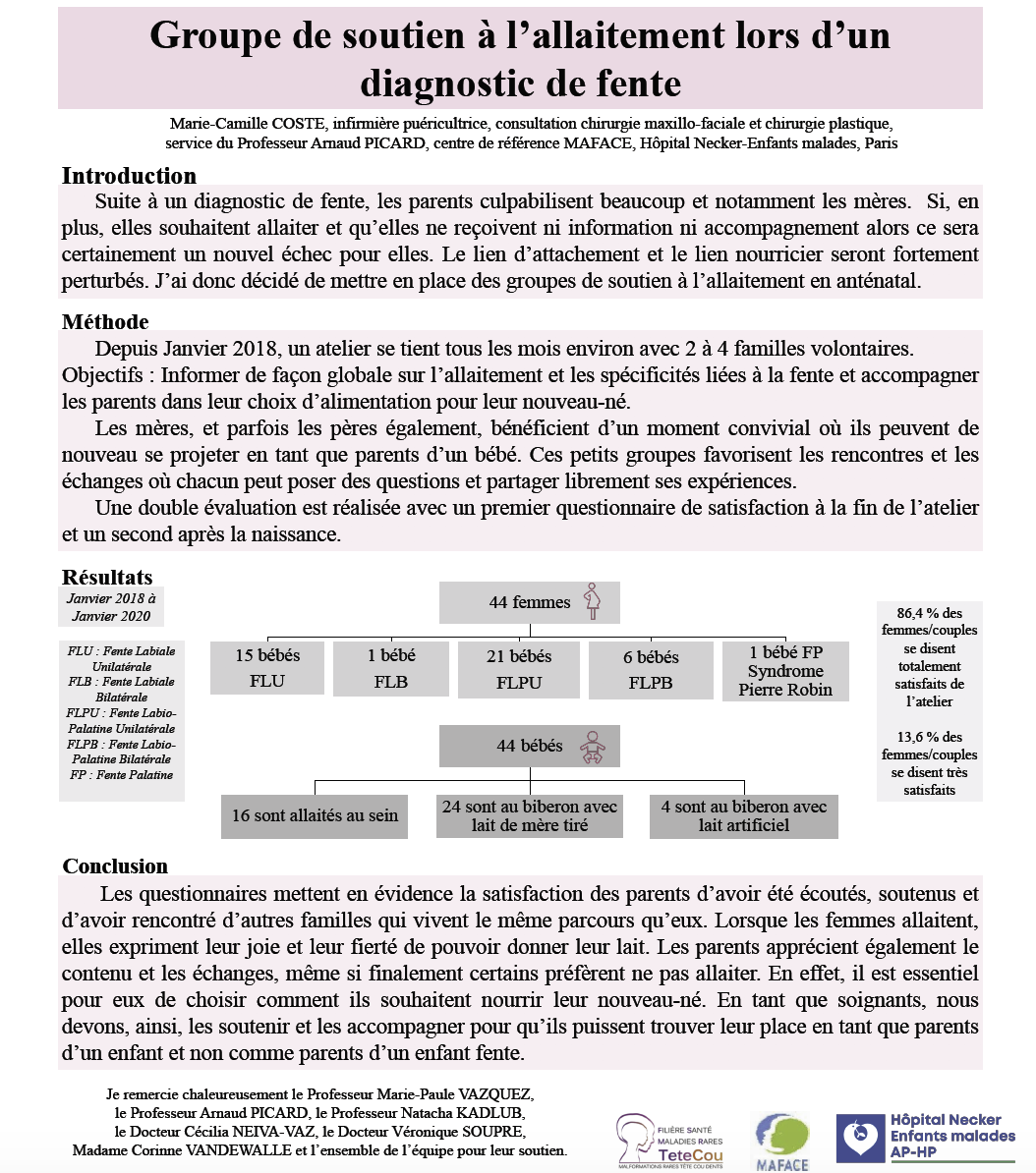 Poster Groupe de soutien à l'allaitement lors d'un diagnostic de fente (CRMR MAFACE, Hôpital Necker)