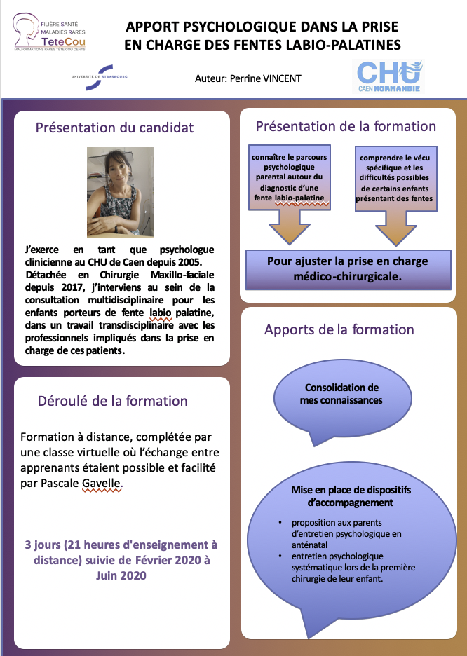Poster Perrine Vincent - Lauréat de l'appel à projets "Soutien à la formation" - DU Fentes labio-palatines