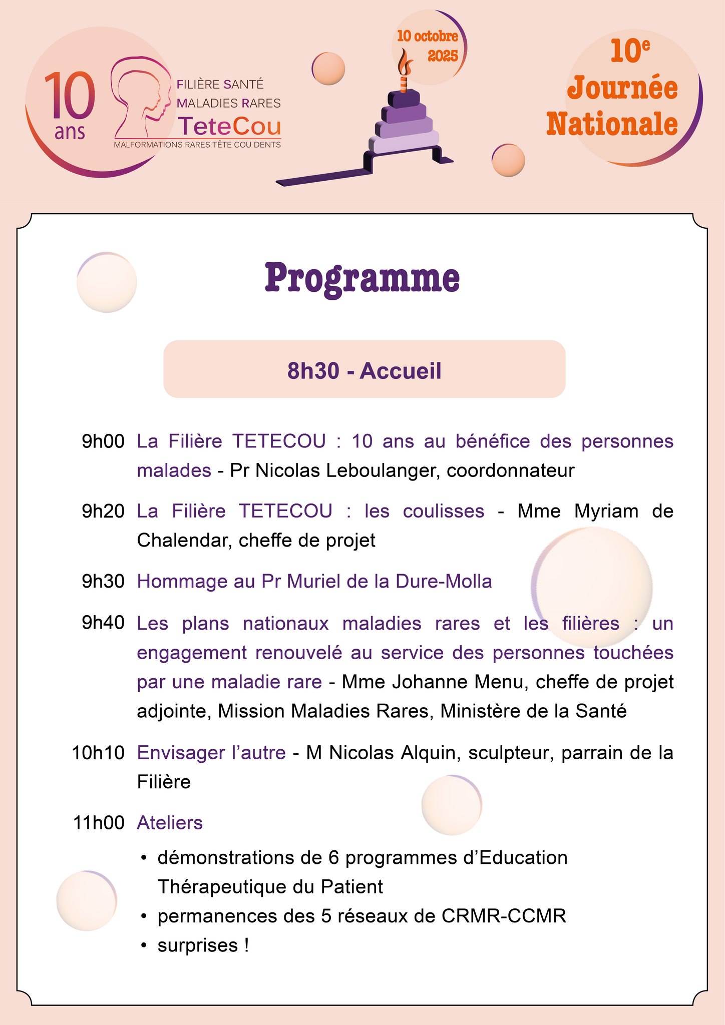 La 10e Journée Nationale annuelle de la Filière se déroulera le vendredi 10 octobre 2025 à l'Institut Imagine (Paris).