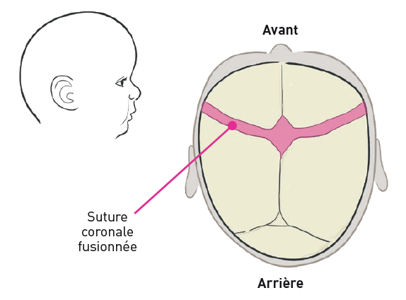 Le visage est symétrique dans le cas où les 2 sutures coronales sont atteintes.