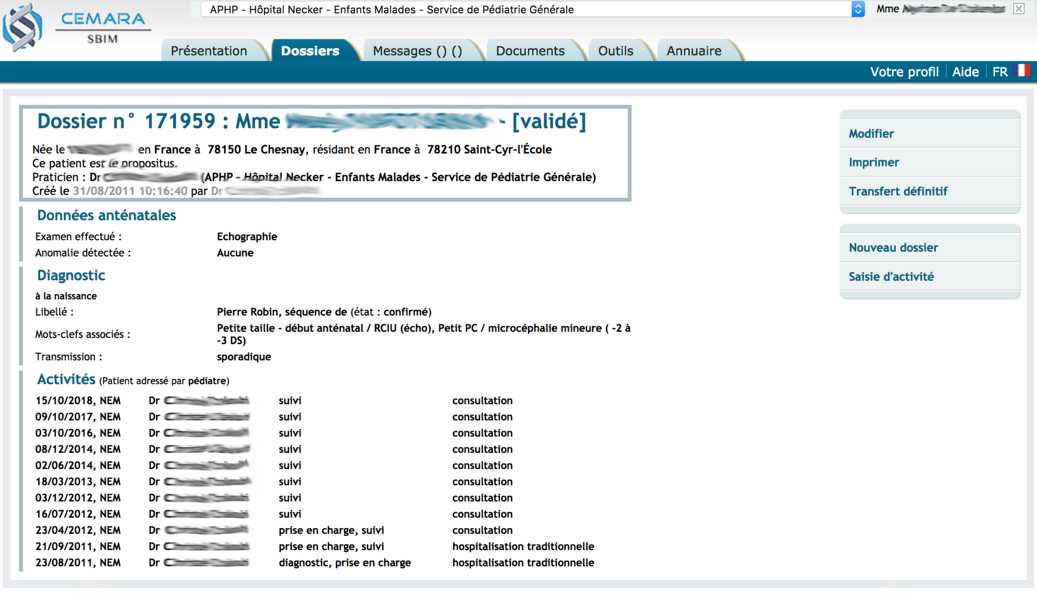 Les données administratives des patients étant déjà présentes dans le logiciel, il suffira aux professionnels de compléter les donnés spécifiques aux maladies rares, ce qui sera beaucoup plus rapide et efficace.
