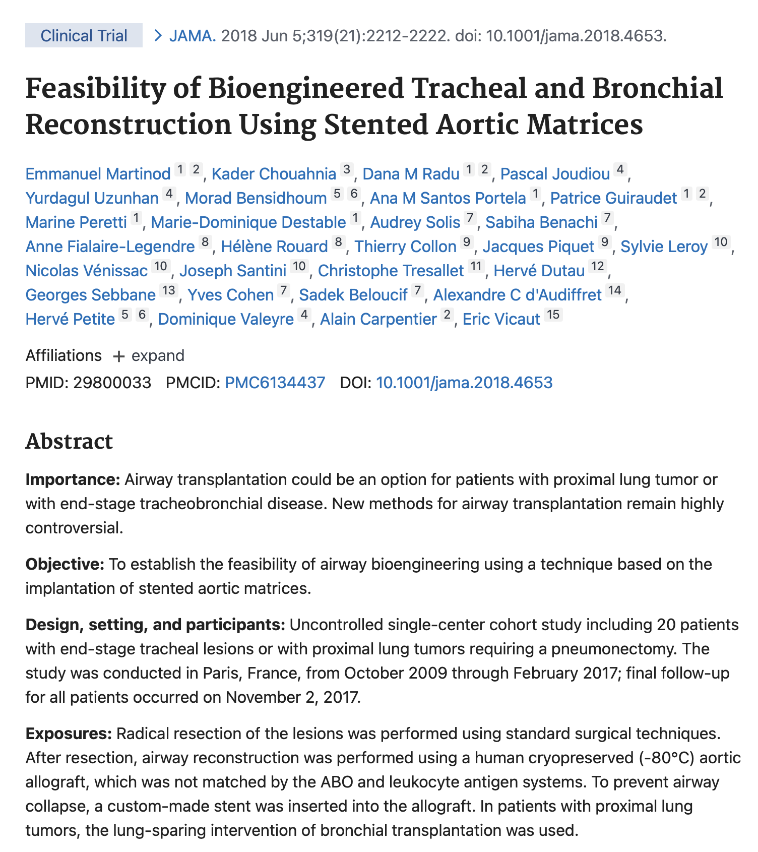 Chez les personnes souffrant de grandes destructions trachéales (cancer, sténose, fistule), les chirurgiens thoraciques de l’UMR 1272 ont développé une technique chirurgicale reproductible pour le remplacement trachéal étendu par allogreffe de matrice aortique, seule technique actuellement efficace chez l’homme. Deux des axes de recherche du laboratoire UMR 1272 « Hypoxie et Poumon » sont :