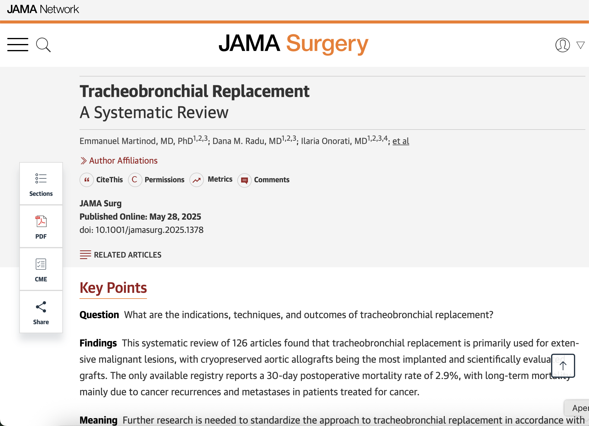 L’un des axes thématiques étudie les processus de réparation, régénération et remplacement des tissus pulmonaires, alvéoles et grosses voies aériennes. En effet, les chirurgiens thoraciques de l’Unité (responsable : Emmanuel Martinod) sont pionniers pour le remplacement trachéal étendu par allogreffe de matrice aortique cryopréservée, seule technique actuellement efficace chez l’homme. Les objectifs sont :