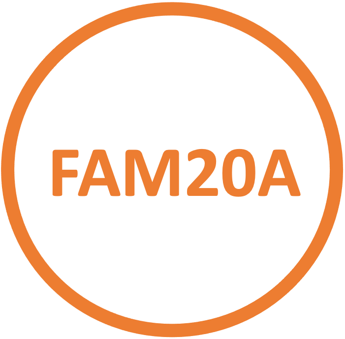 FAM20A est une pseudokinase, c’est-à-dire une protéine avec une séquence proche de la famille des kinases mais dépourvue d’activité enzymatique. Cette protéine est notamment exprimée dans l’émail dentaire. Son activité passerait soit par la réalisation d’un complexe et l’augmentation de l’activité biologique de la protéine FAM20C soit par sa capacité à lier l’ATP.